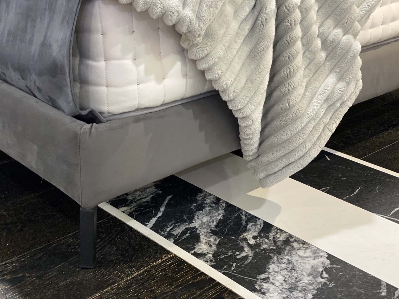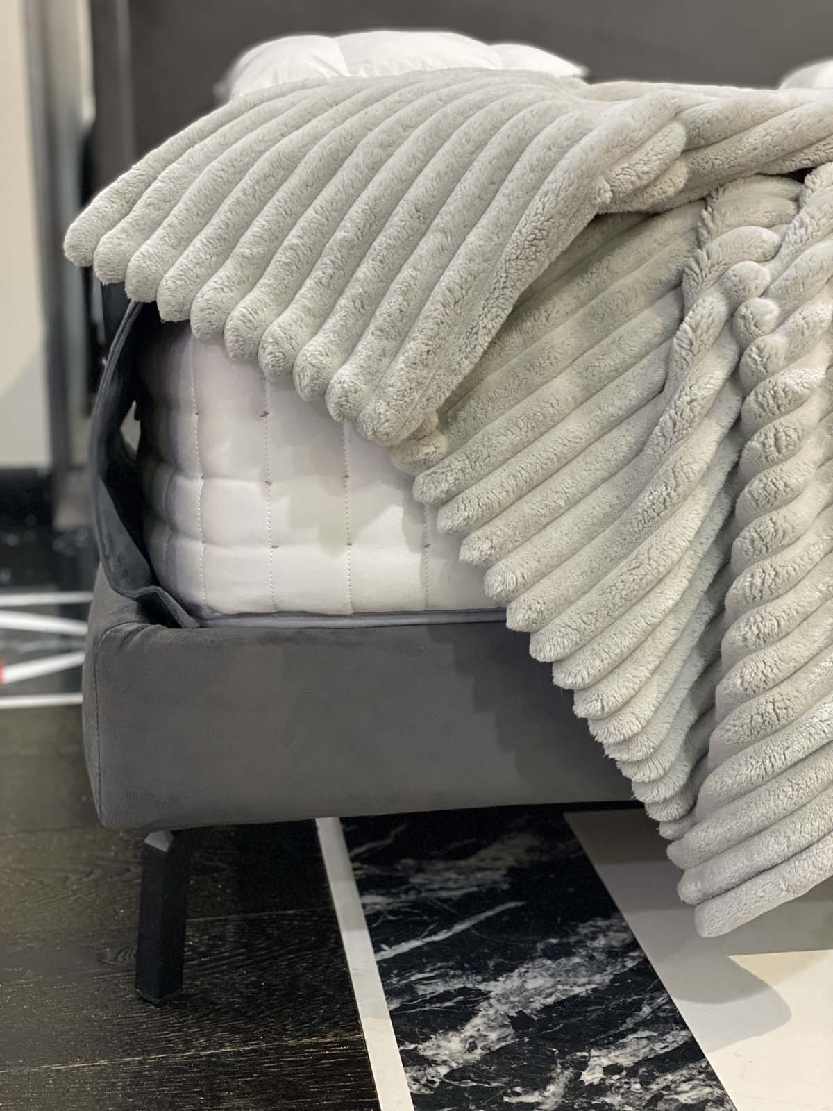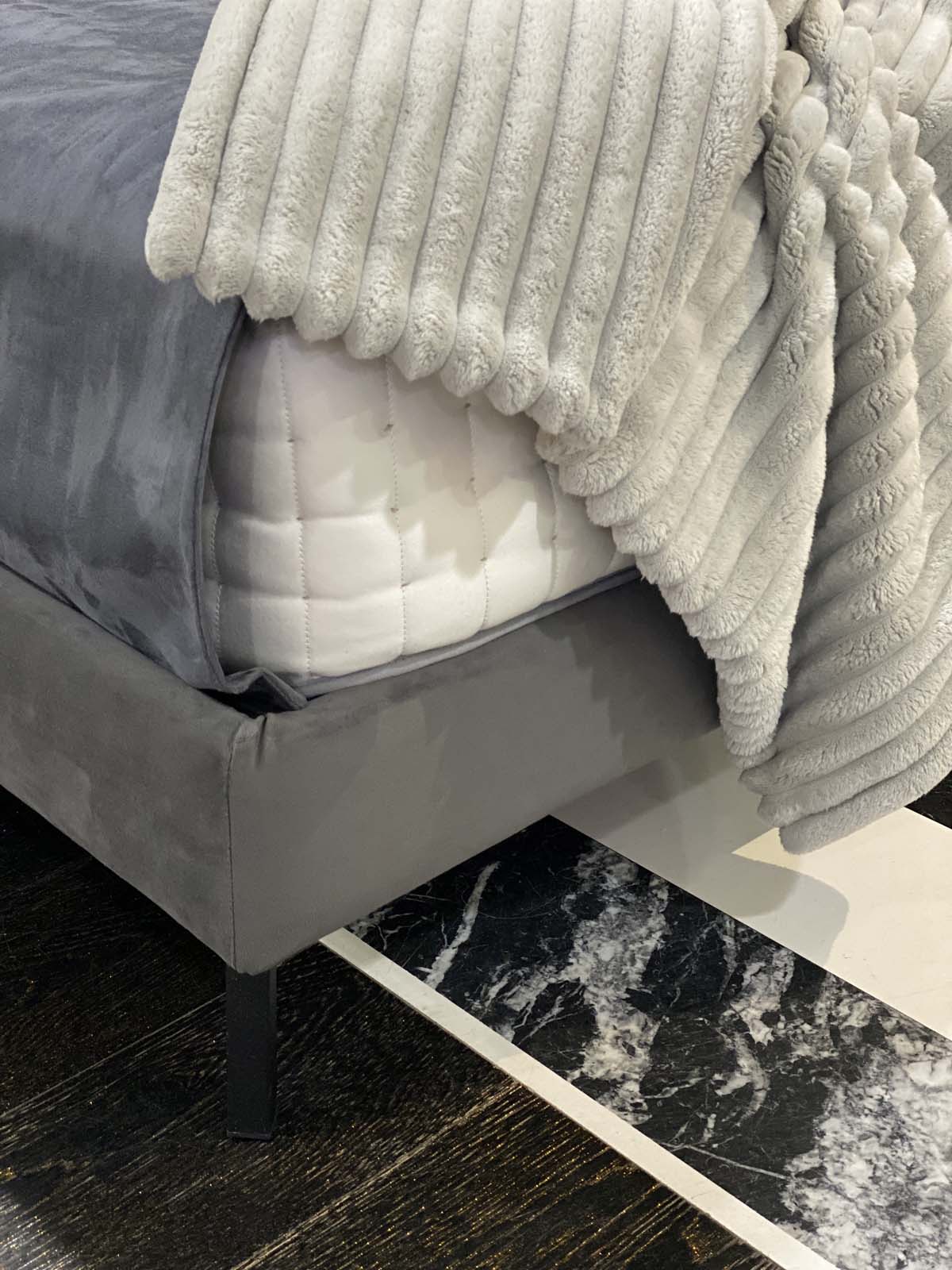 Обивка кровати: основа - высококачественный велюр с низким ворсом цвета графит.