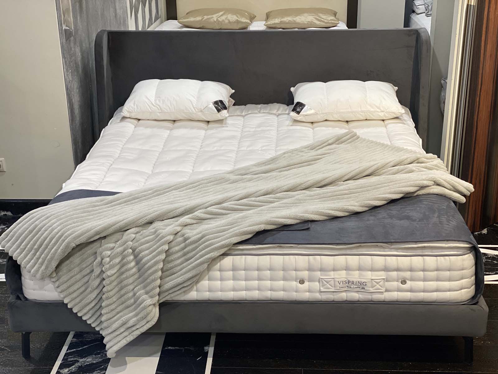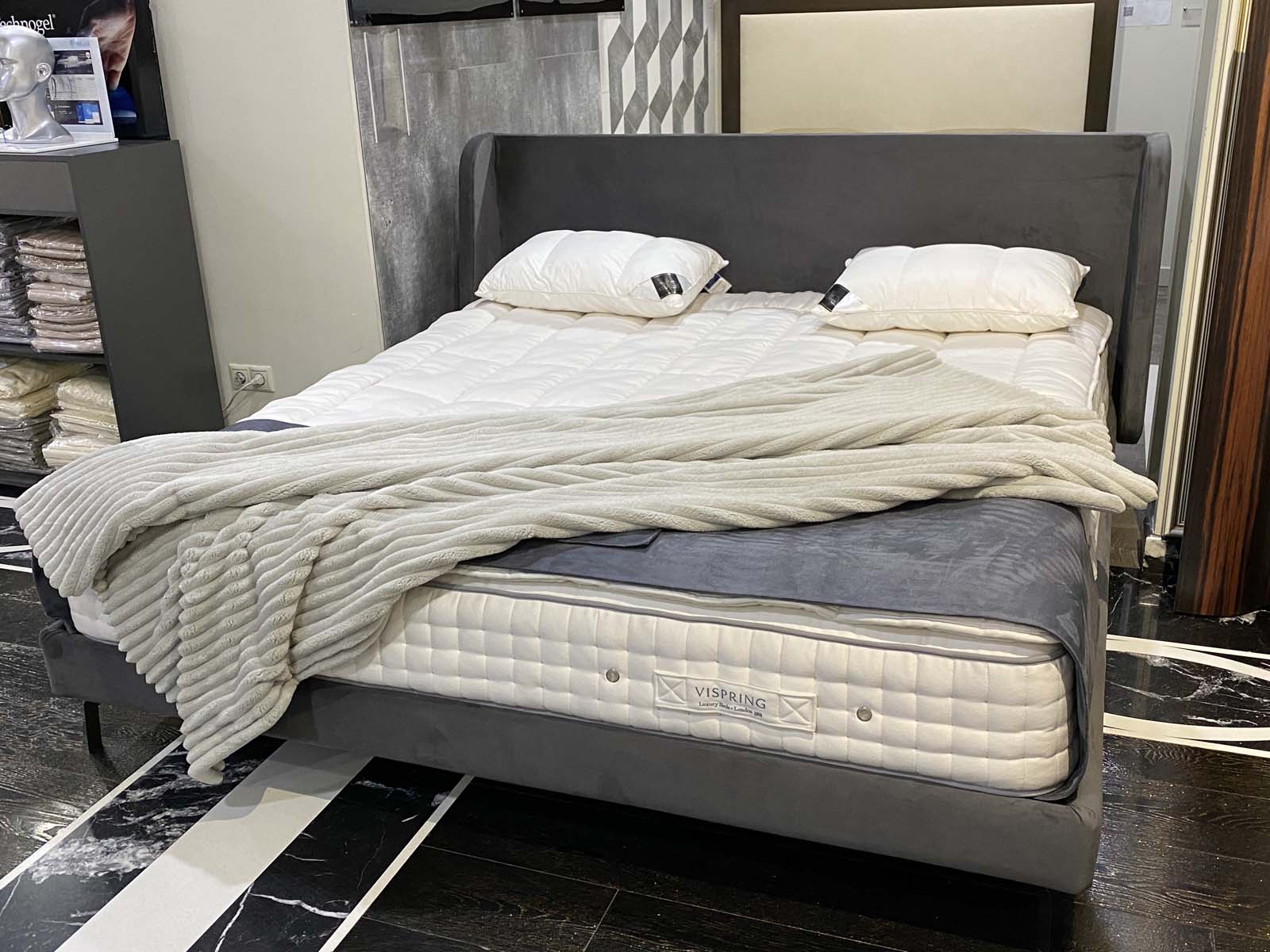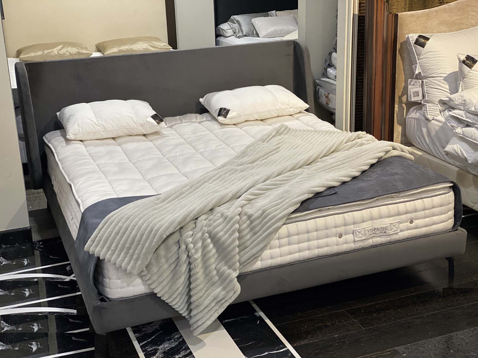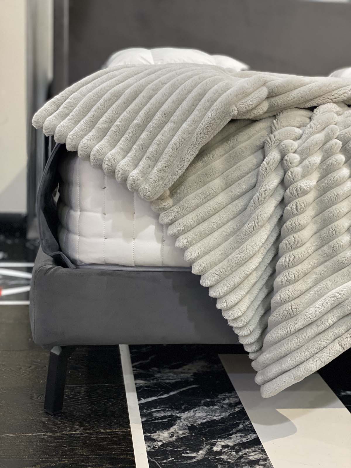 Обивка кровати: основа - высококачественный велюр с низким ворсом цвета графит.