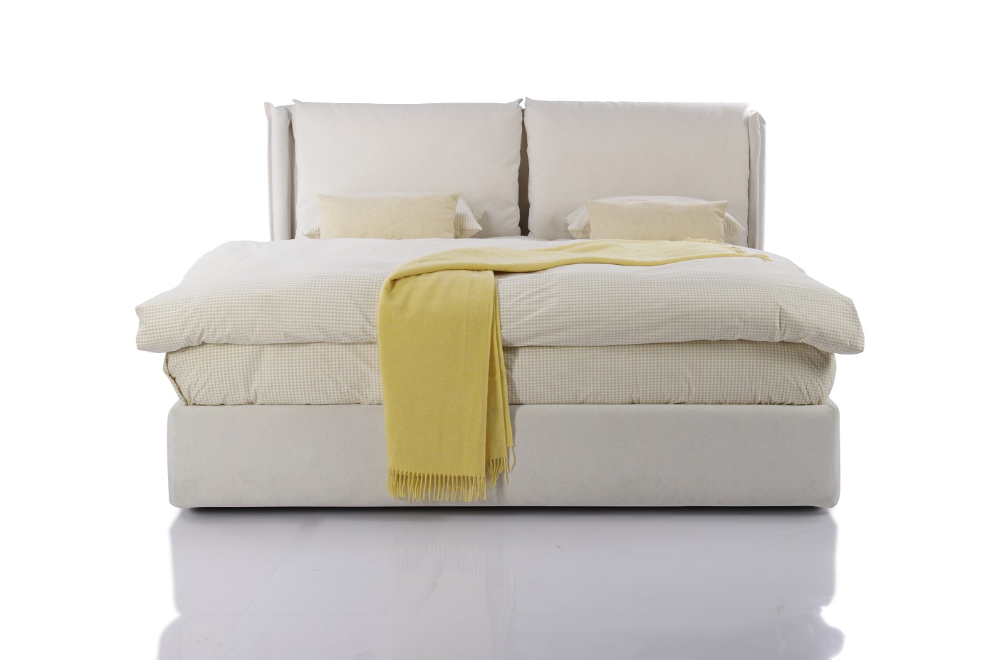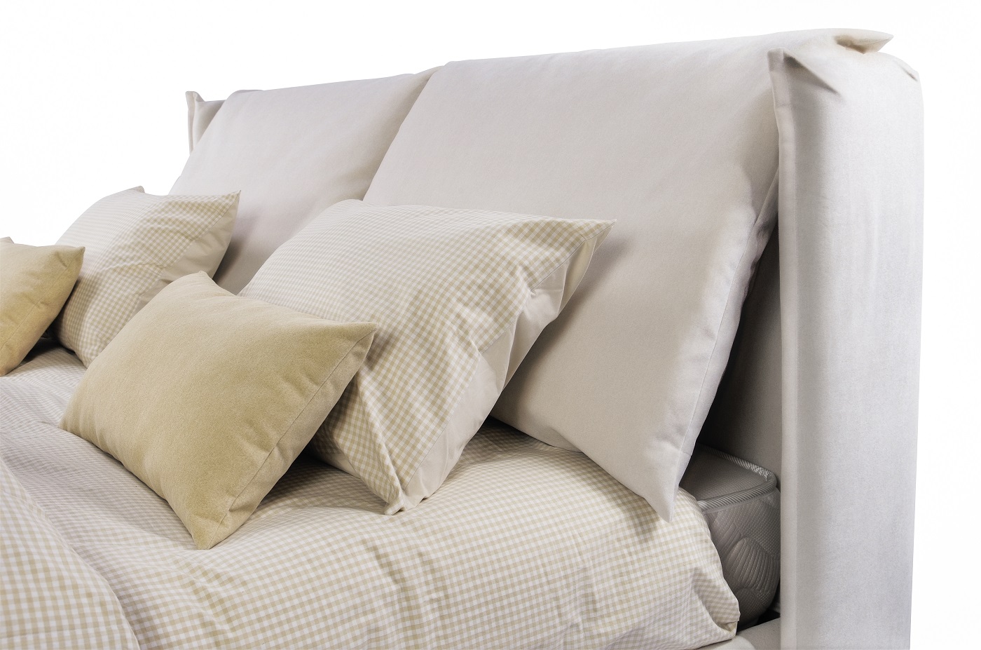 Pat italian de designer cu tăblie neobișnuită și perne detașabile (cu fermoar). Datorită designului modern și capacității de a alege țesătura și textura finisajului, se va potrivi perfect în orice interior la modă.