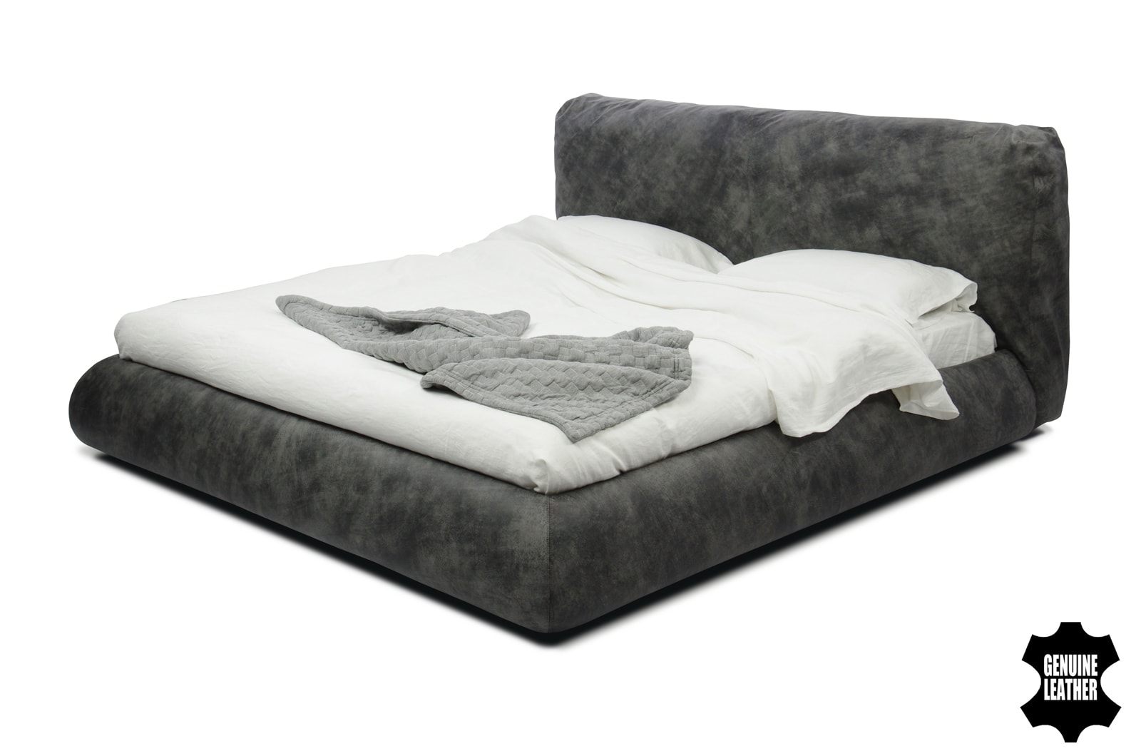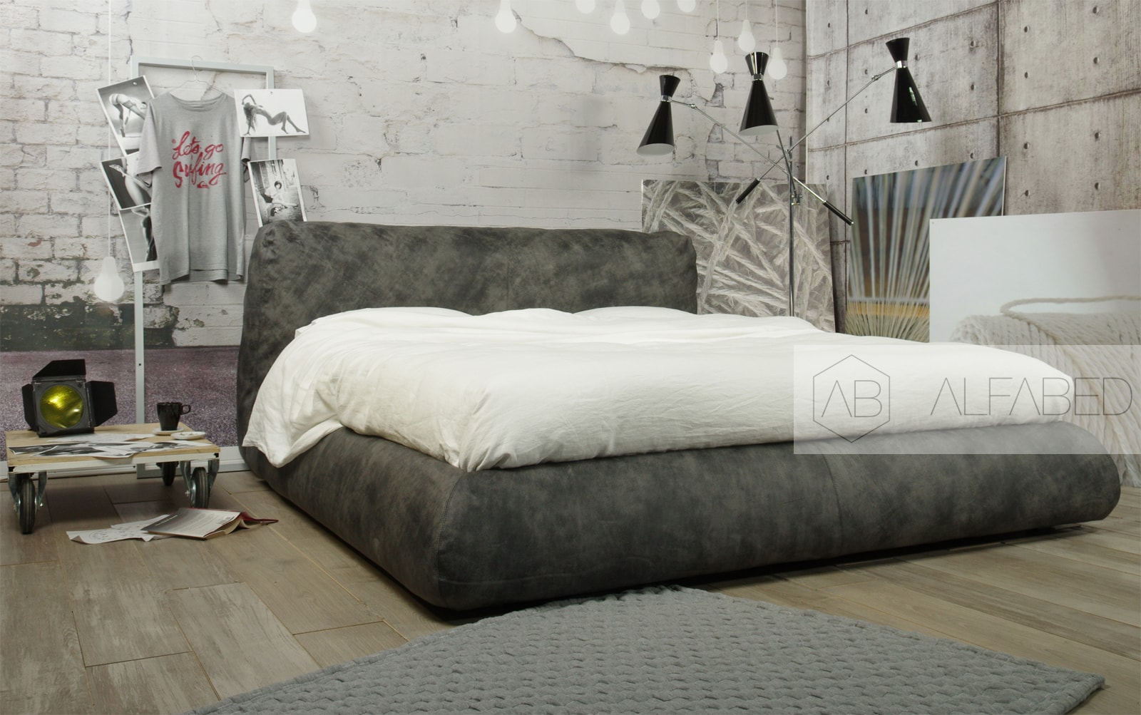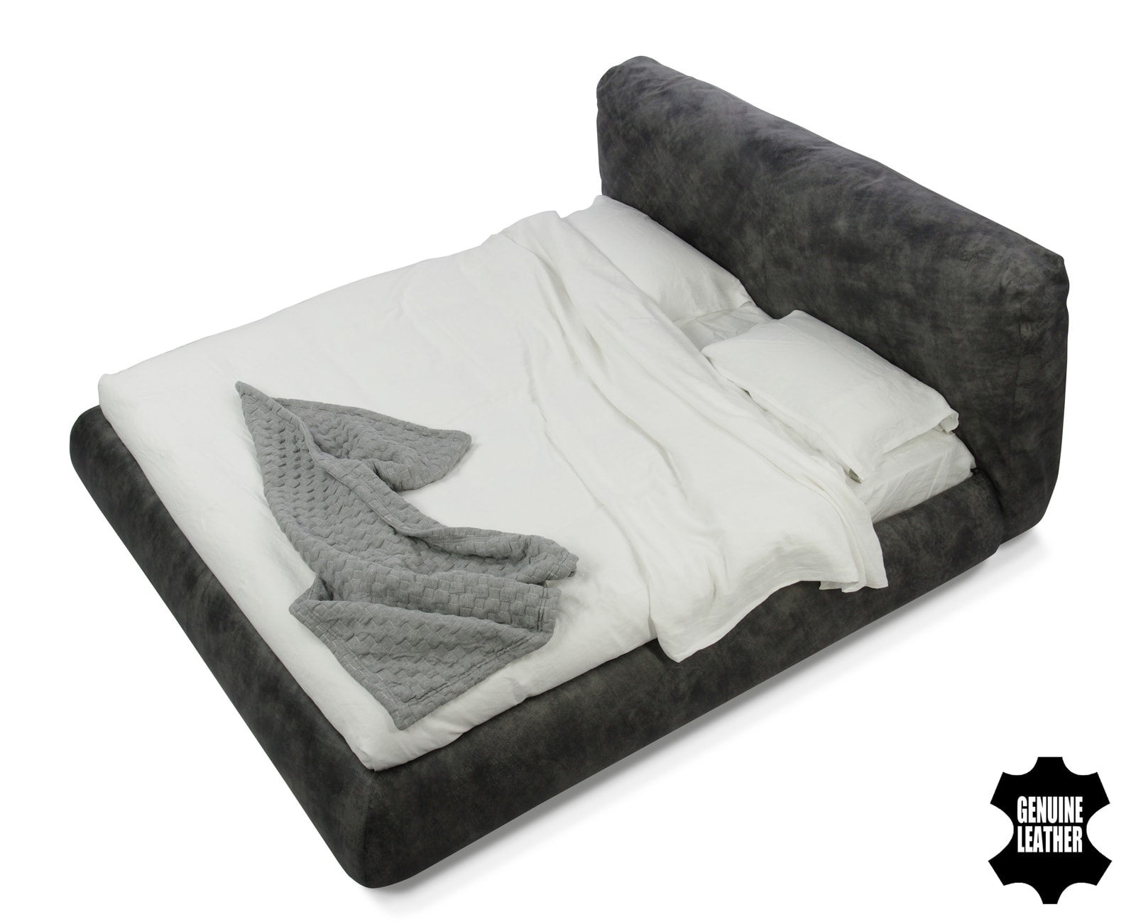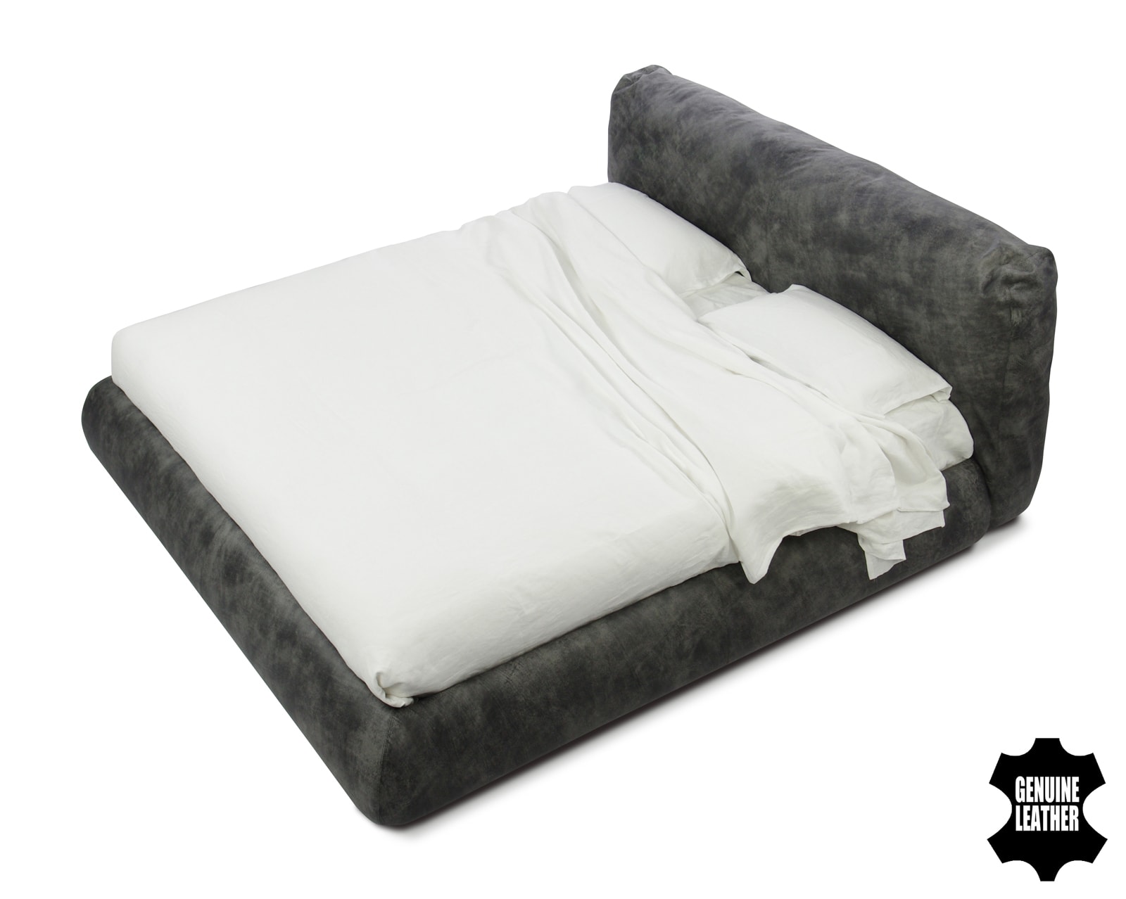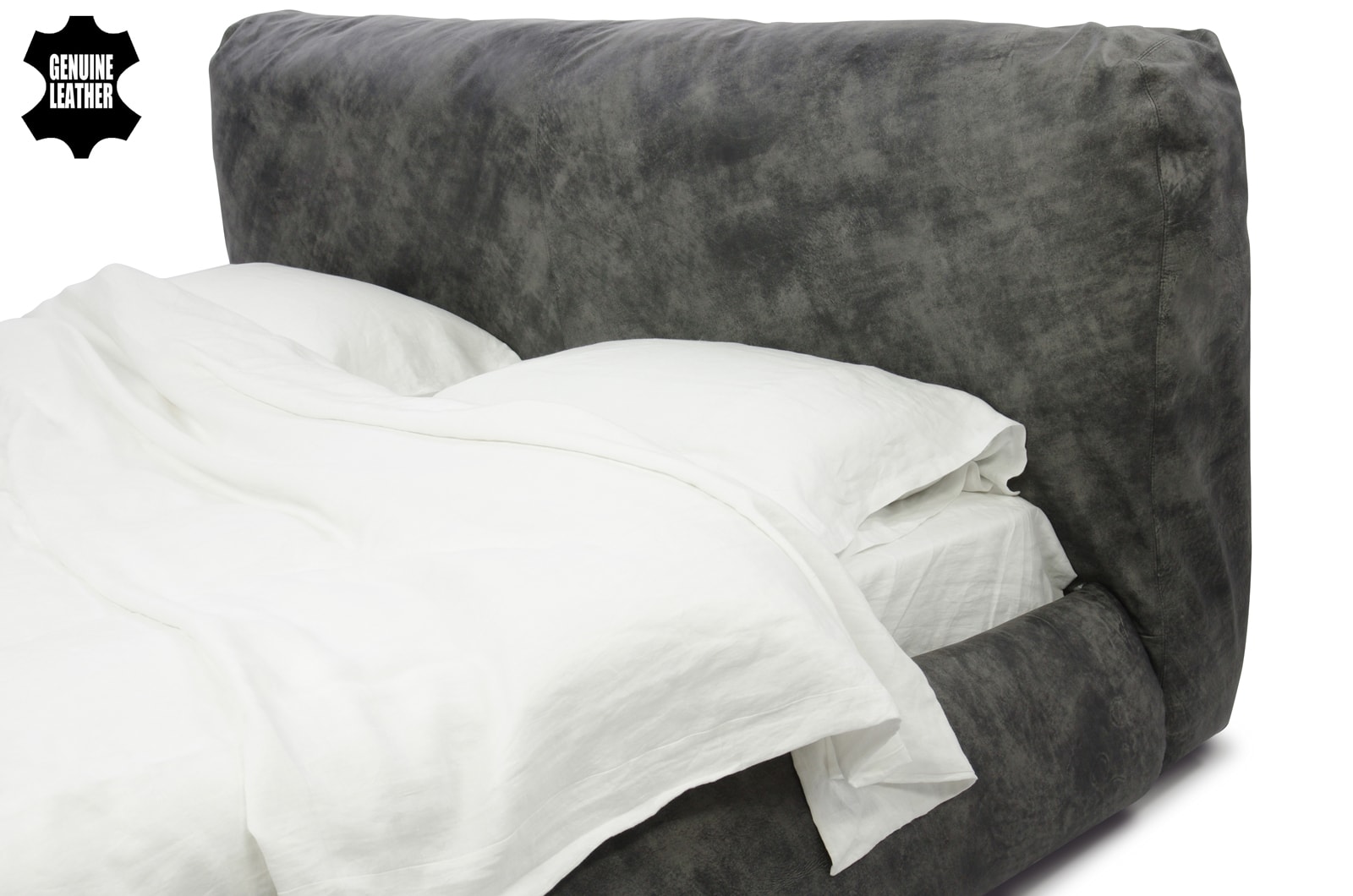 Особенности дизайна: уютная объемная кровать с большой интегрированной подушкой в качестве изголовья.