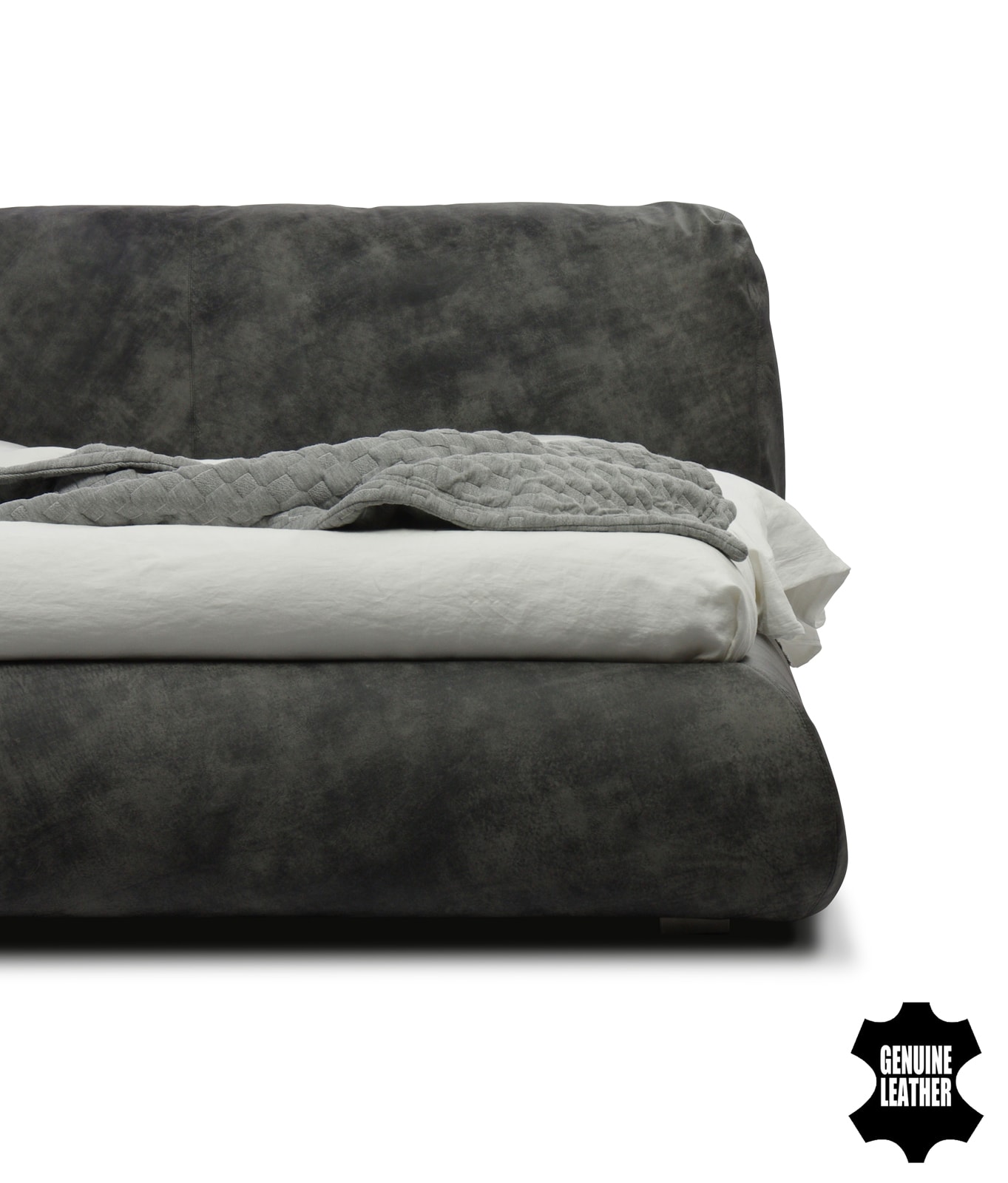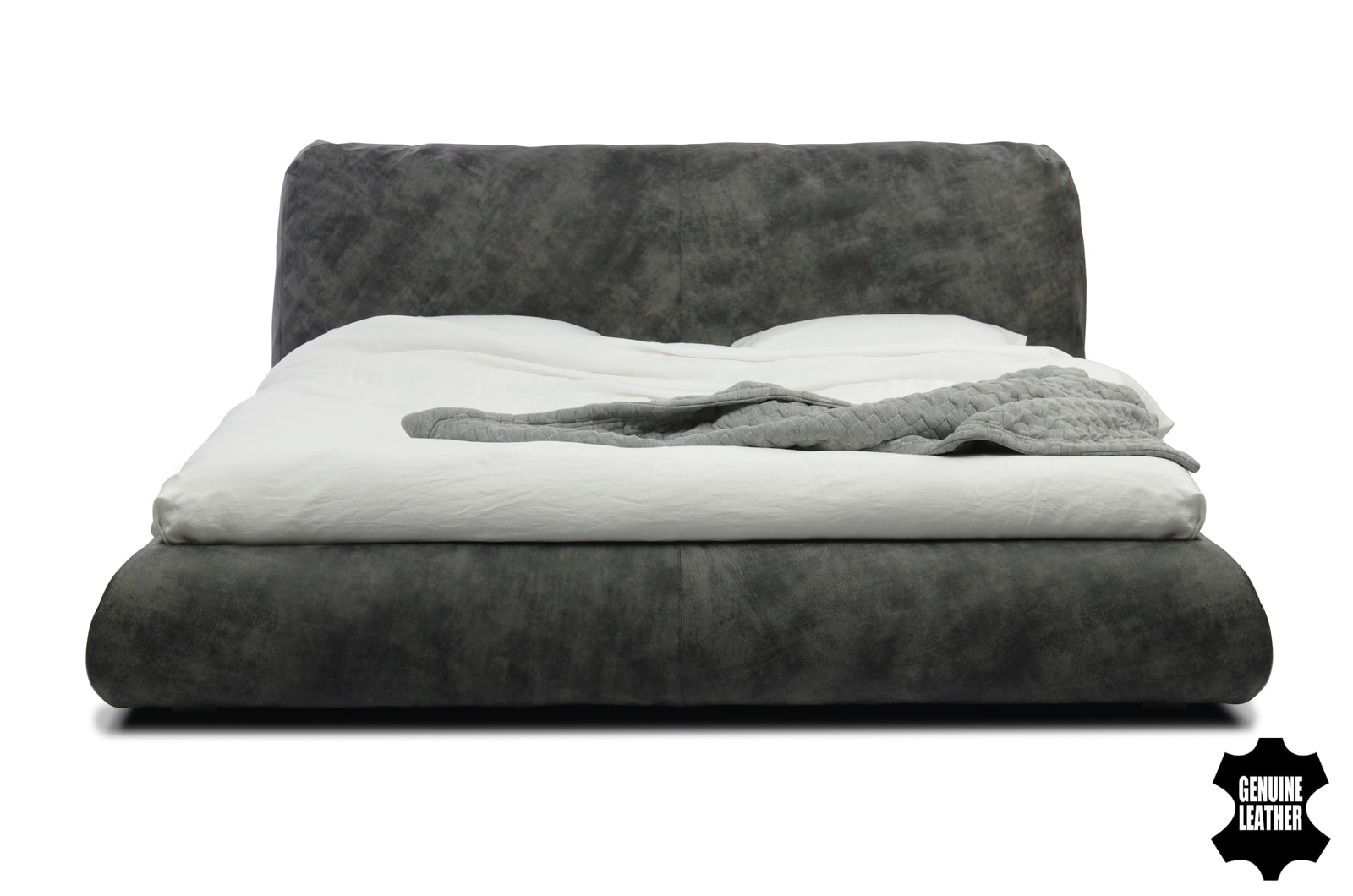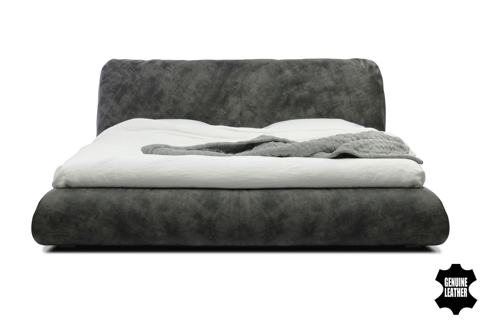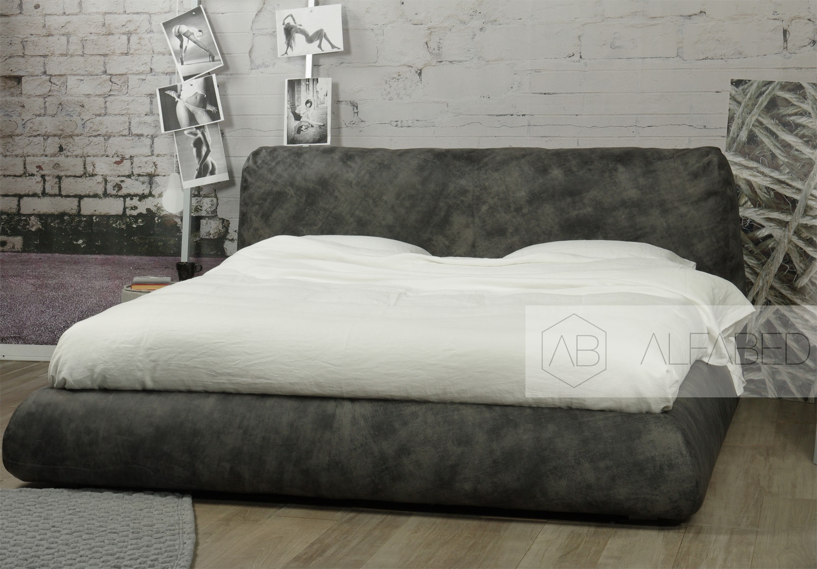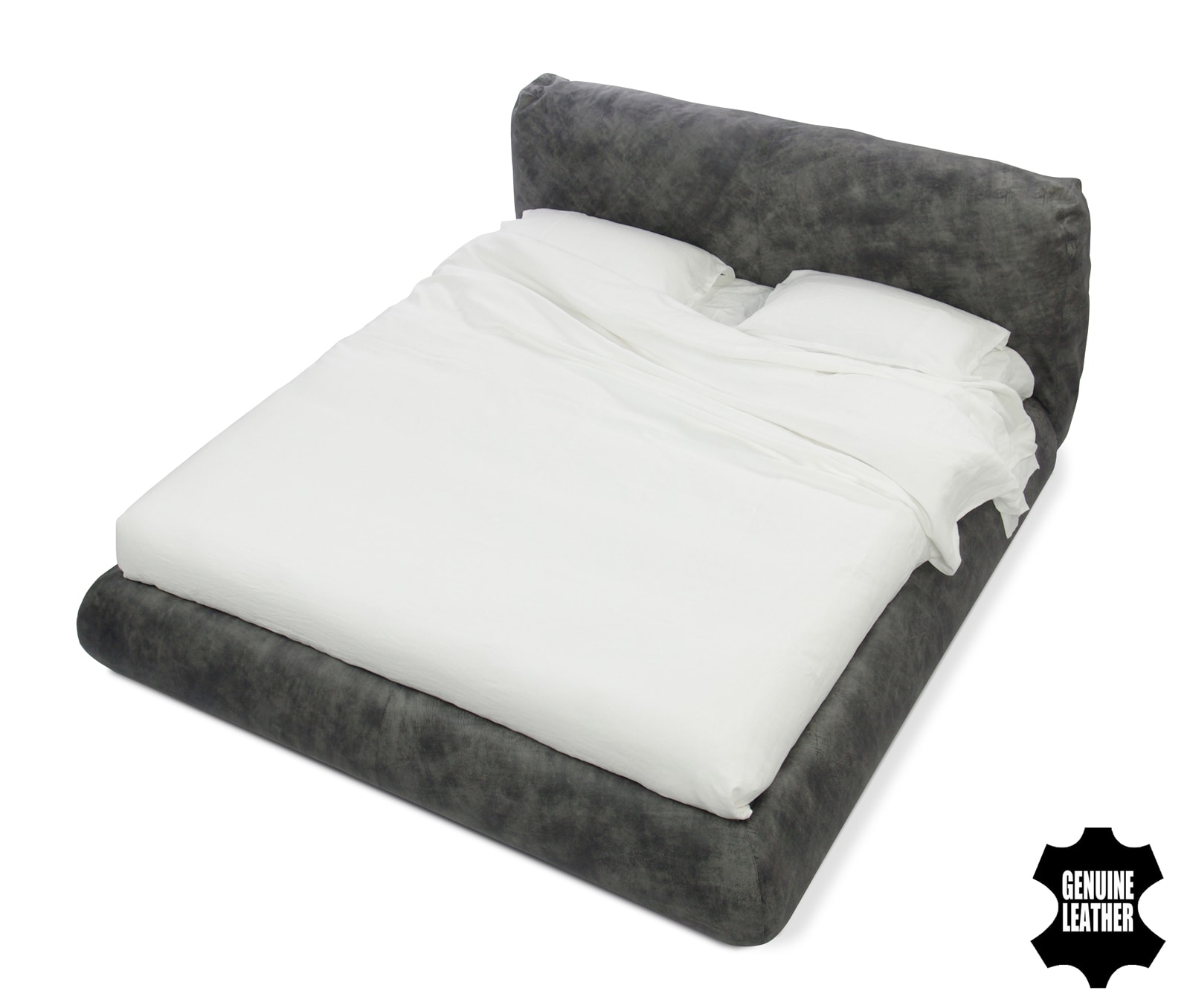 Особенности дизайна: уютная объемная кровать с большой интегрированной подушкой в качестве изголовья.