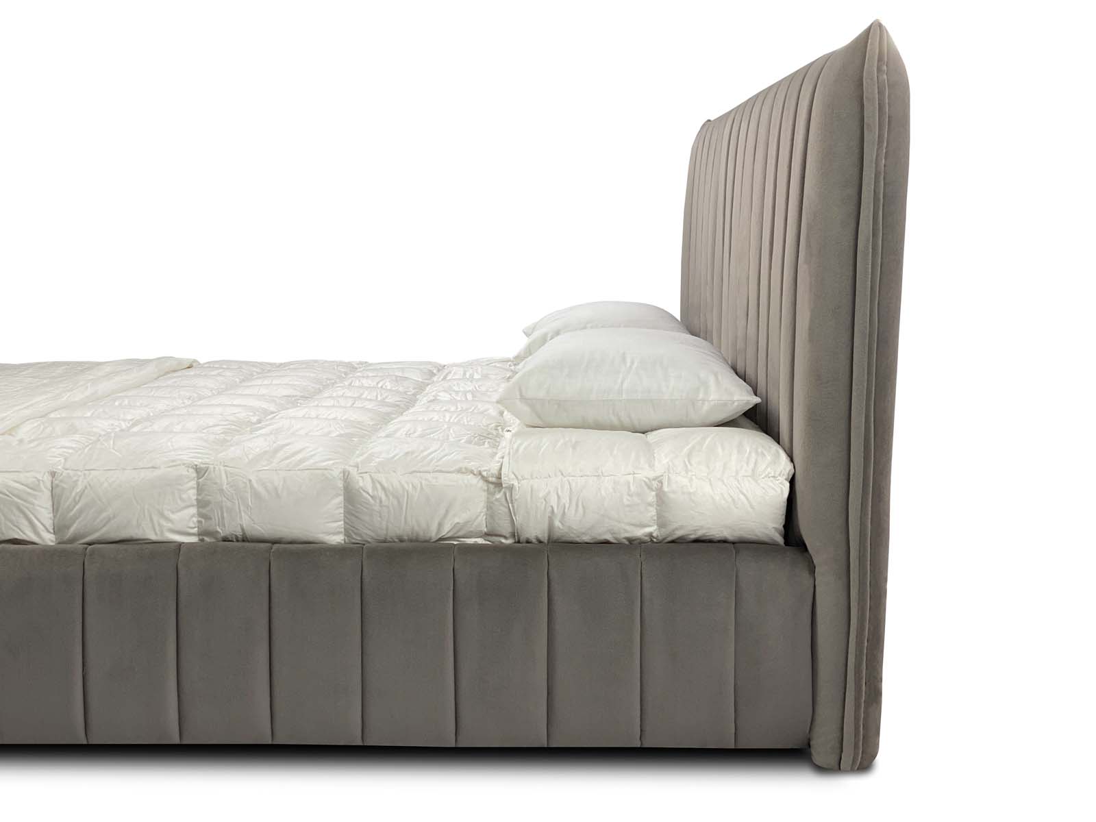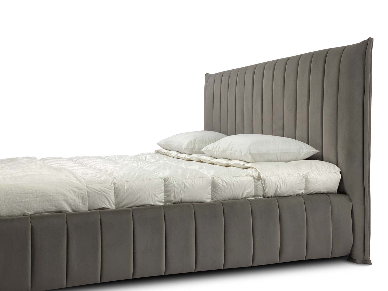 Представляем Вашему вниманию идеальную кровать для кинестека, да...да Вы не ослышались - перед Вами самая приятная кровать на ощупь!  Современная интерьерная кровать, выполненная по чехольной технологии (все чехлы съемные), стеганная на мягком объемном наполнителе, который отлично держит форму.  Интересный геометричный дизайн - вертикальные полосы на изголовье и боковинах кровати - придают кровати уют и современный стиль. Каждая полоса объемная и мягкая за счет уникального наполнителя Memoryform, который прекрасно держит объем и форму.  За счет того, что боковины кровати также выполнены по технологии объемной стежки на материале с памятью формы Memoryform - все углы кровати очень мягкие. Представьте, как уютно будет прислониться к спинке изголовья, читая книгу перед сном, вы ощутите приятное погружение и вместе с тем расслабление.