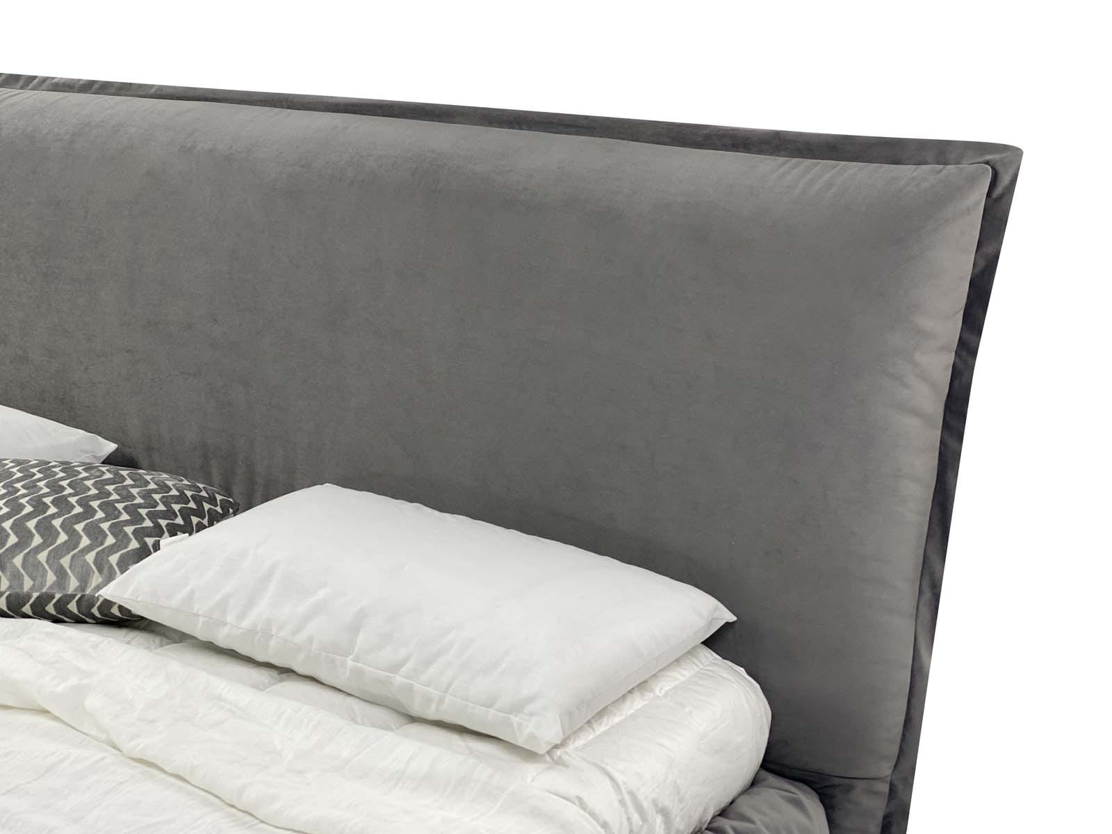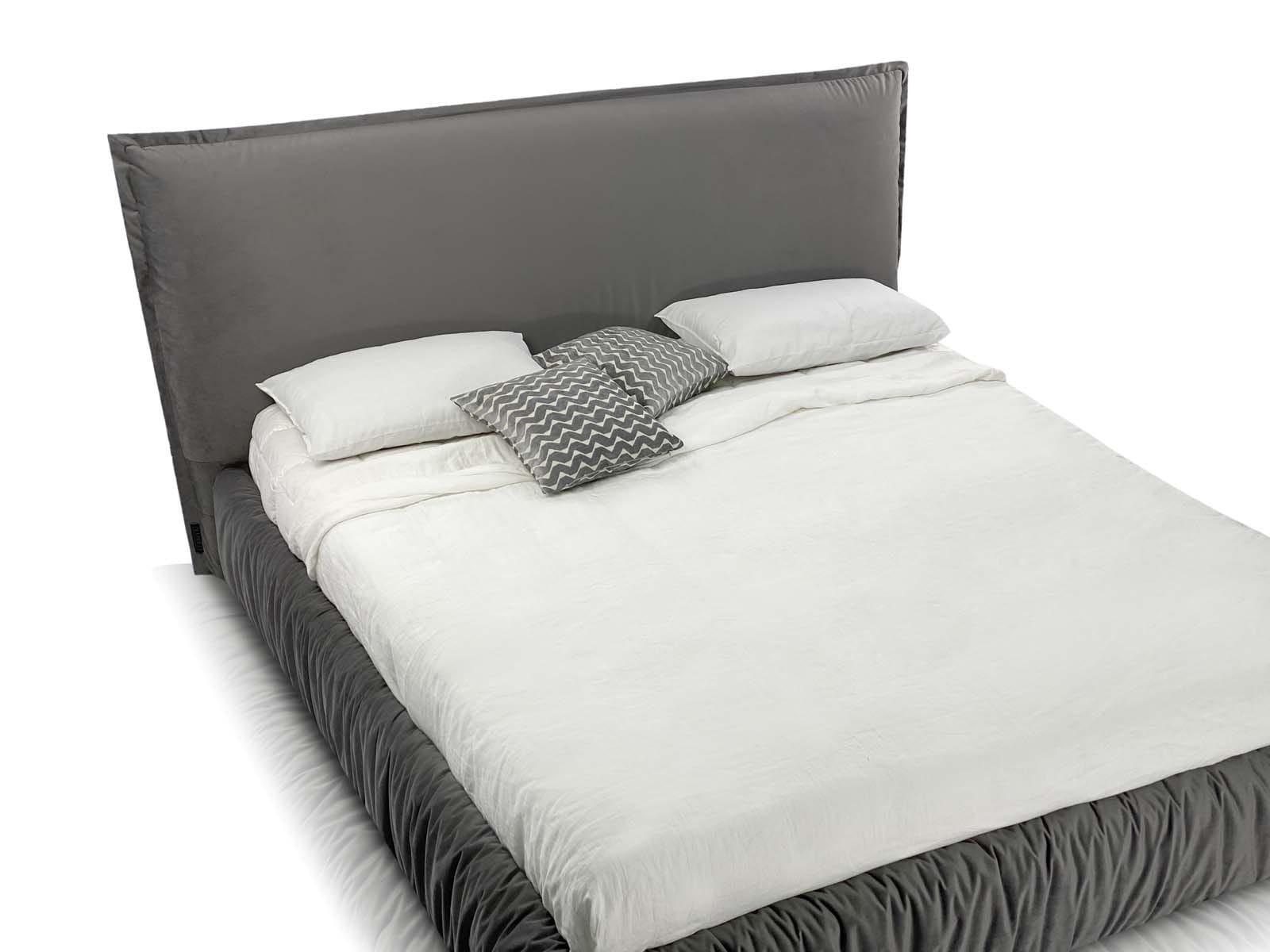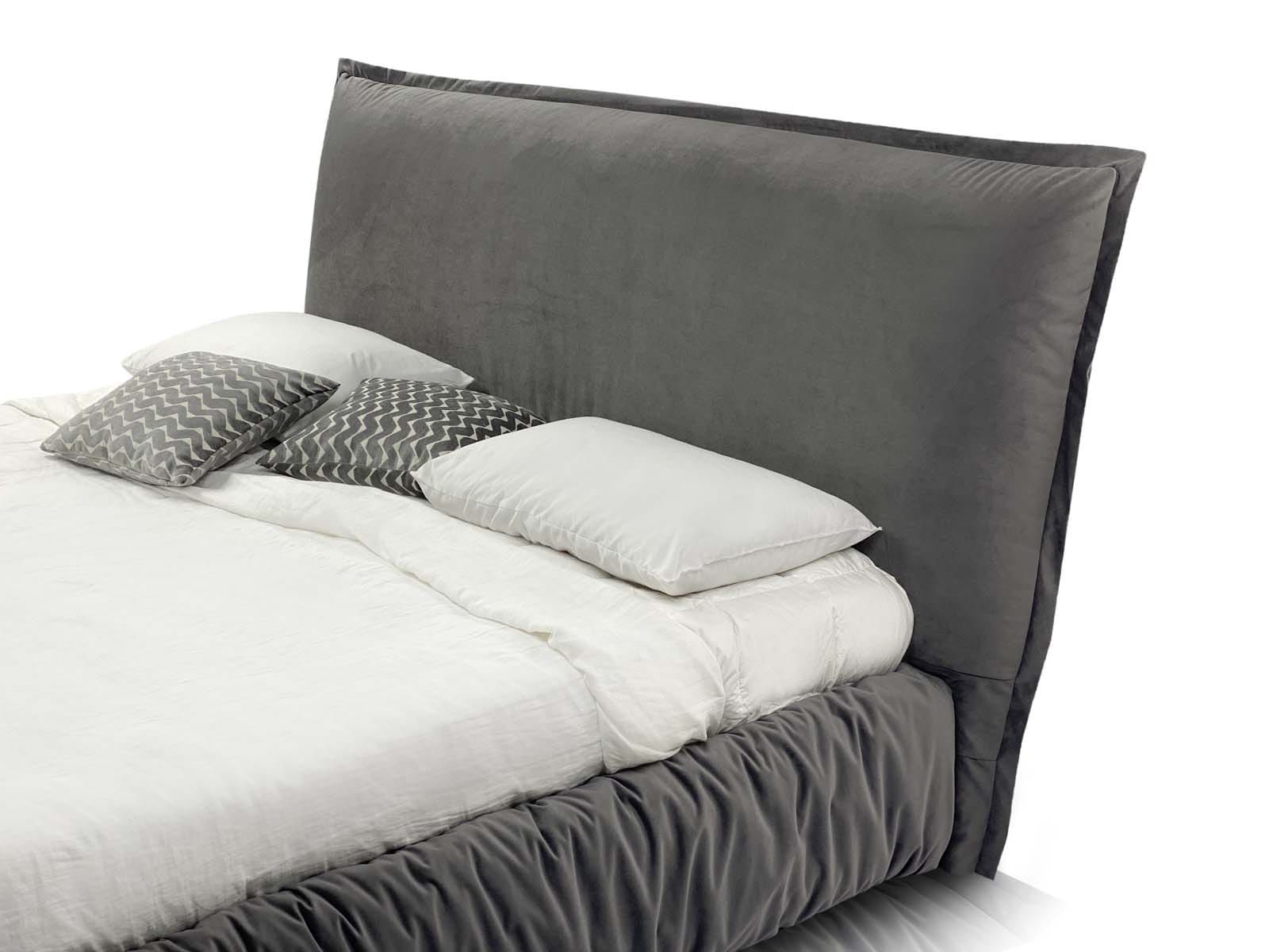 Caracteristici de design: un pat tapițat confortabil, voluminos, cu pereți laterali umflați și o pernă mare integrată ca tăblie.