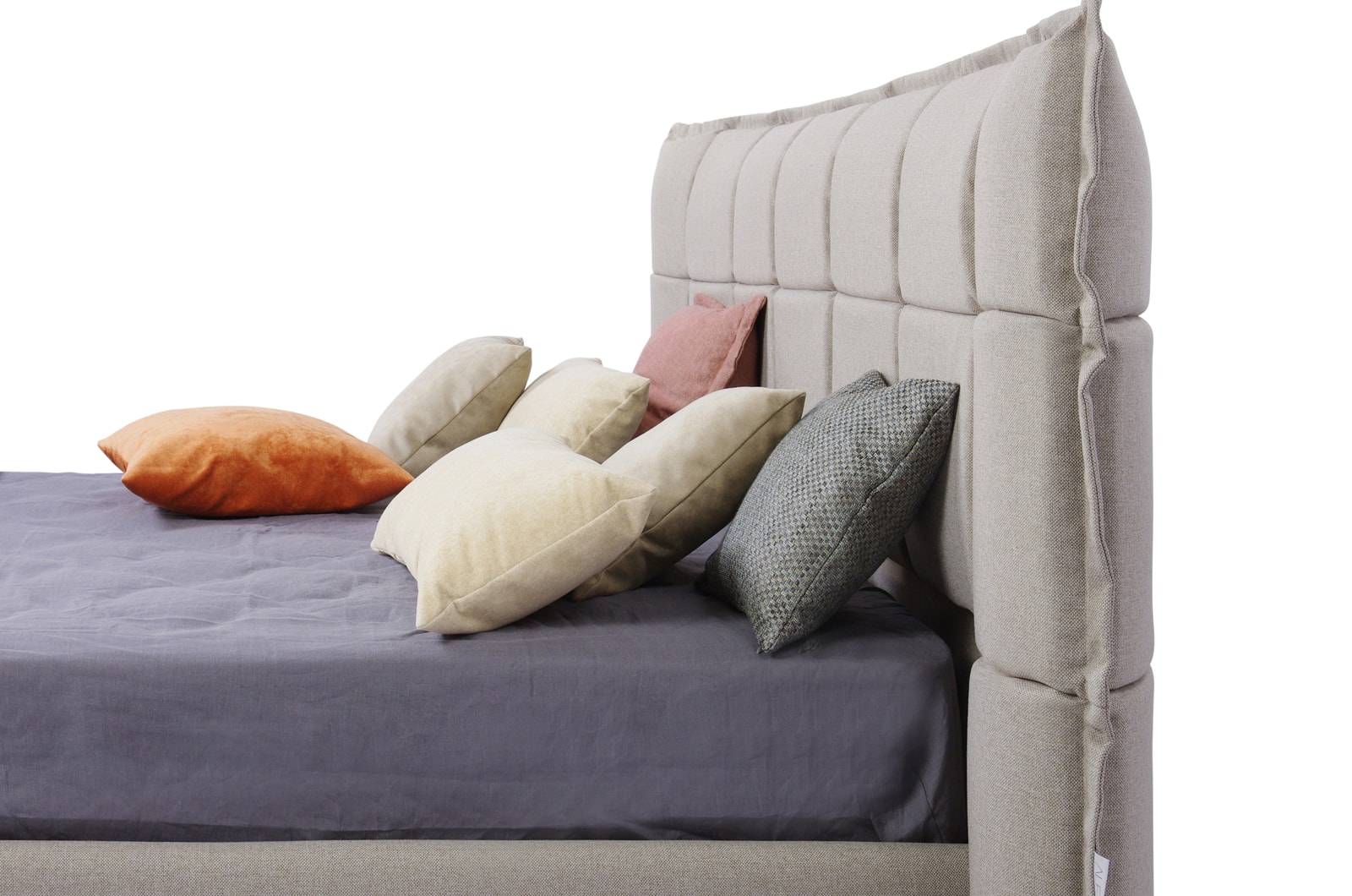 Caracteristici de design: tăblie geometrică înclinată înaltă, cu pătrate și „aripi” deschise. Fiecare pătrat este voluminos și moale datorită umpluturii unice cu memorie de formă care menține perfect volumul și forma.