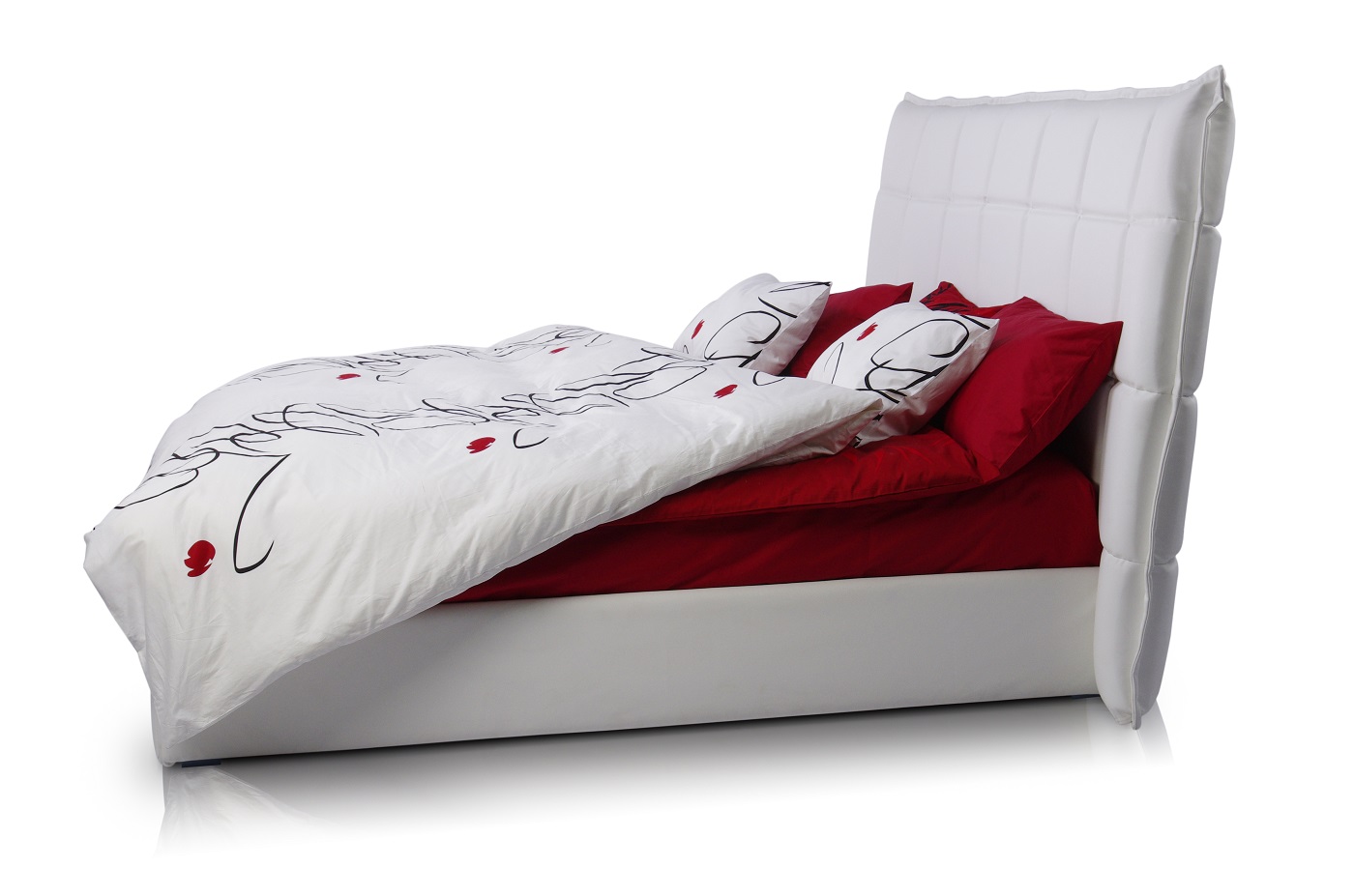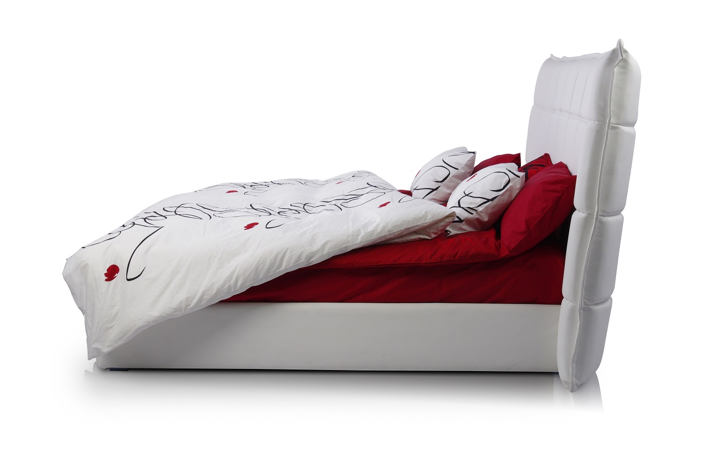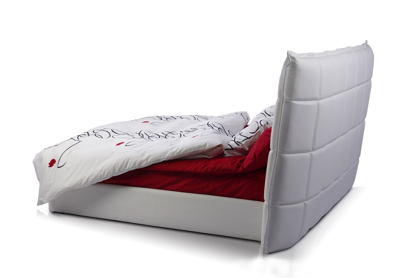 Caracteristici de design: tăblie geometrică înclinată înaltă, cu pătrate și „aripi” deschise. Fiecare pătrat este voluminos și moale datorită umpluturii unice cu memorie de formă care menține perfect volumul și forma.