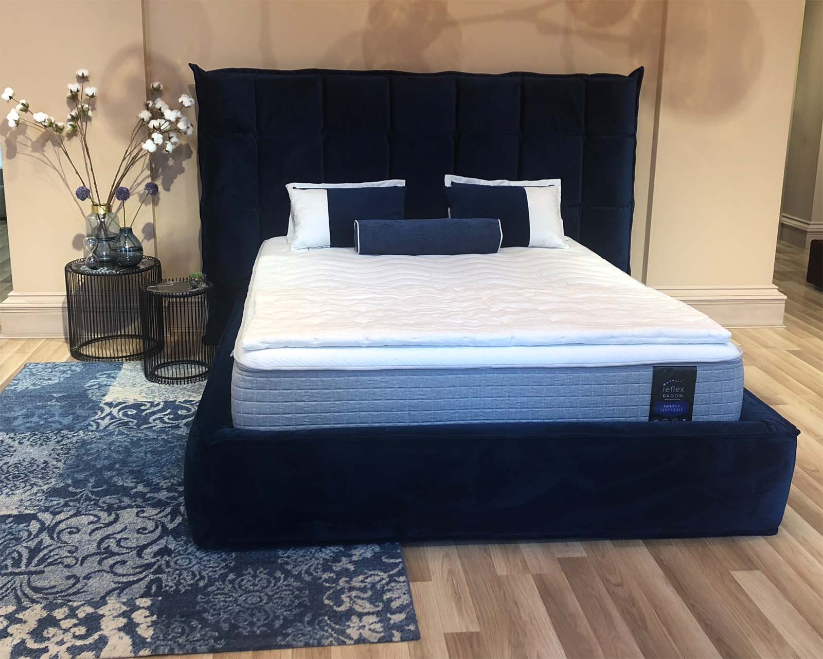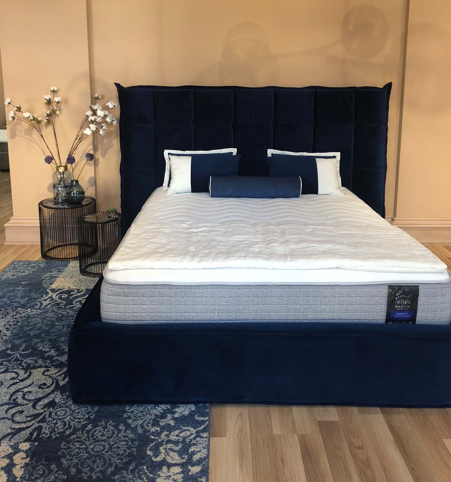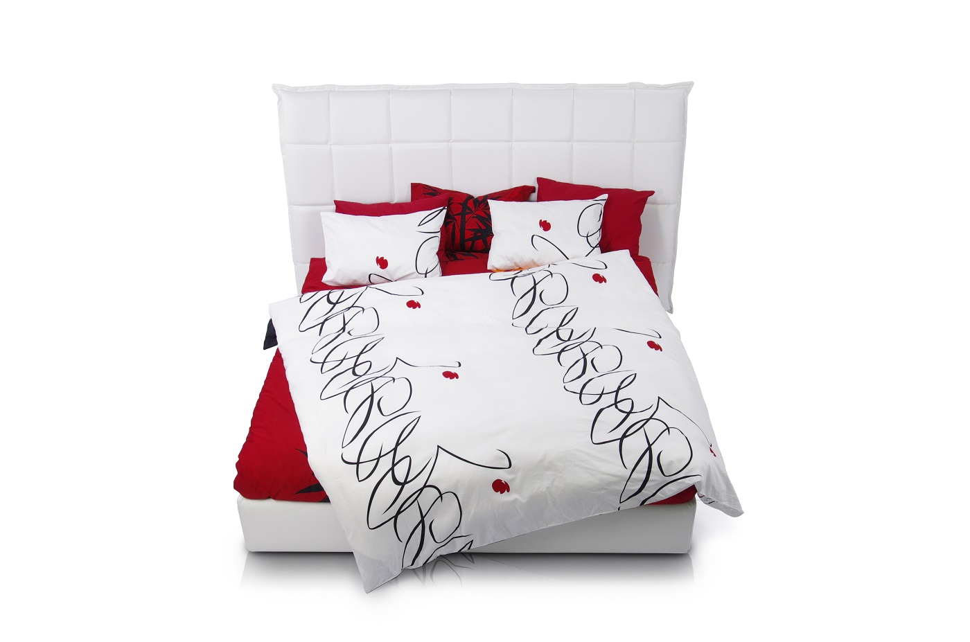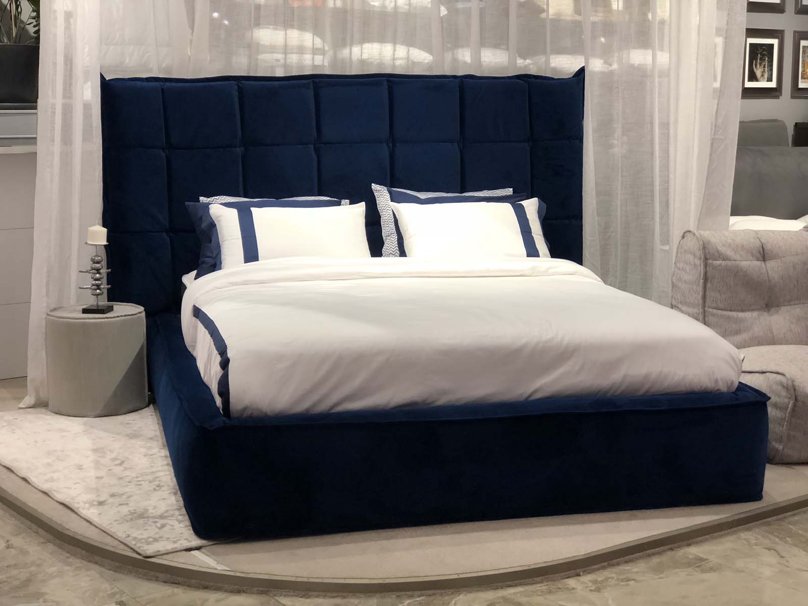 Caracteristici de design: tăblie geometrică înclinată înaltă, cu pătrate și „aripi” deschise. Fiecare pătrat este voluminos și moale datorită umpluturii unice cu memorie de formă care menține perfect volumul și forma.