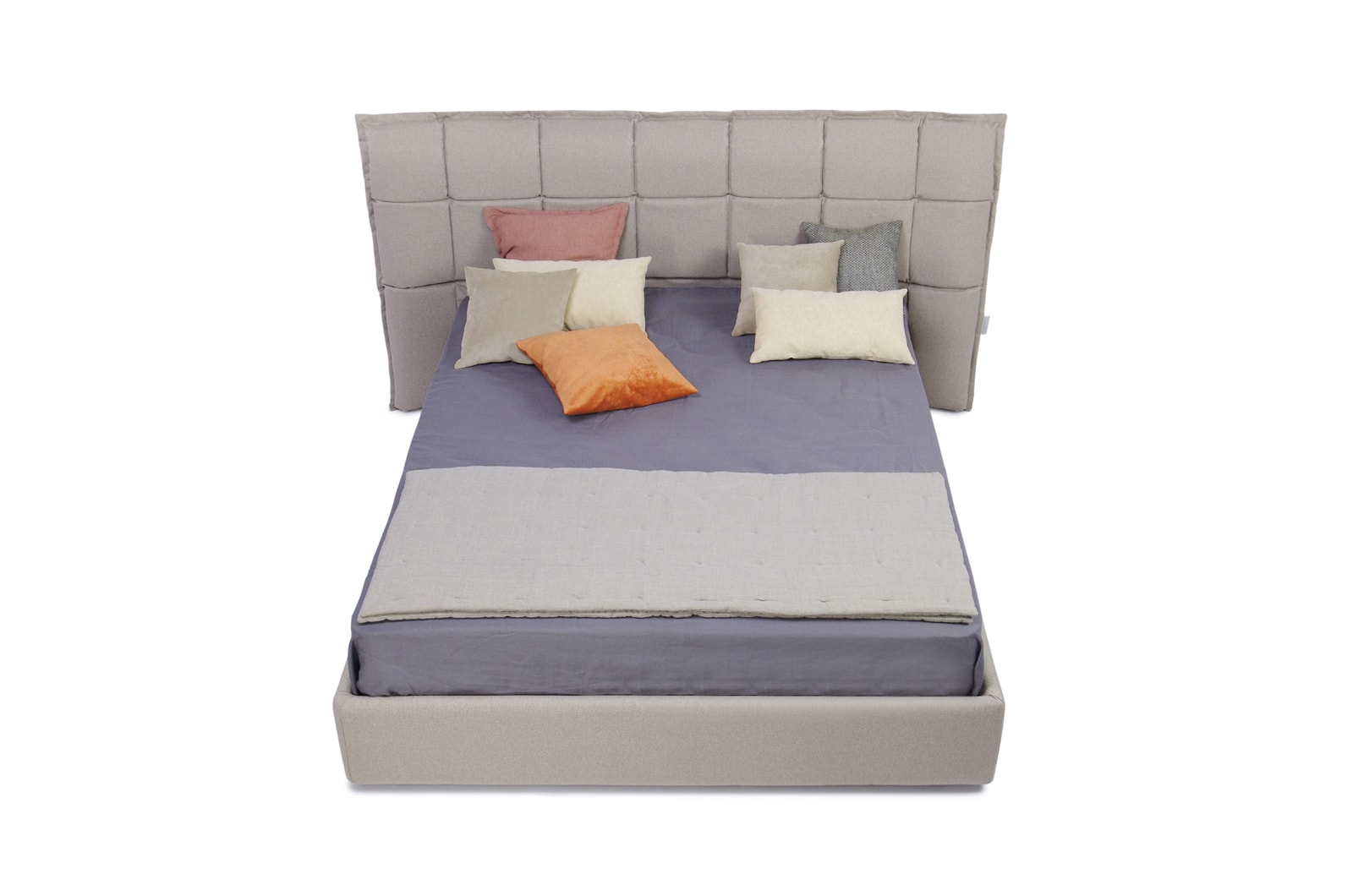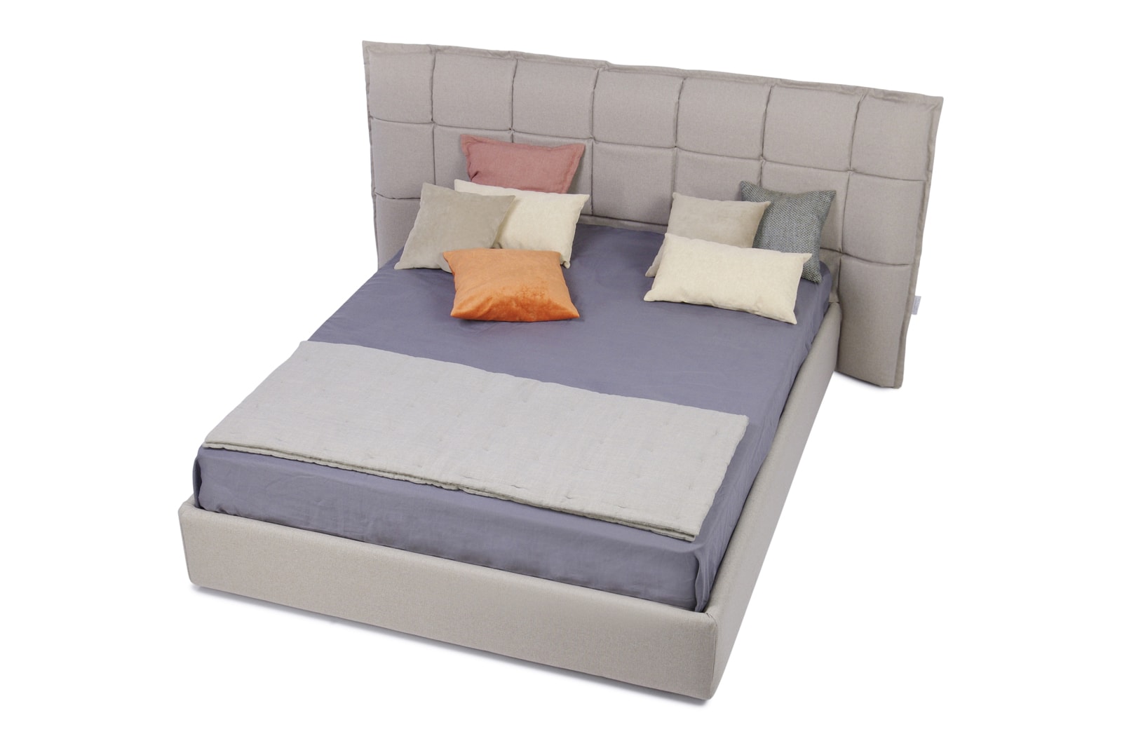 Caracteristici de design: O tăblie geometrică înclinată interesantă, cu pătrate și „aripi” deschise. Fiecare pătrat este voluminos și moale datorită umpluturii unice cu memorie de formă care menține perfect volumul și forma.