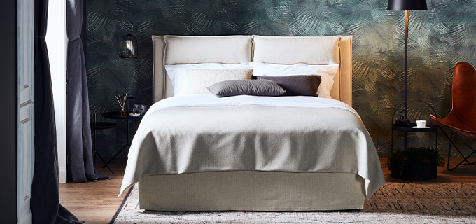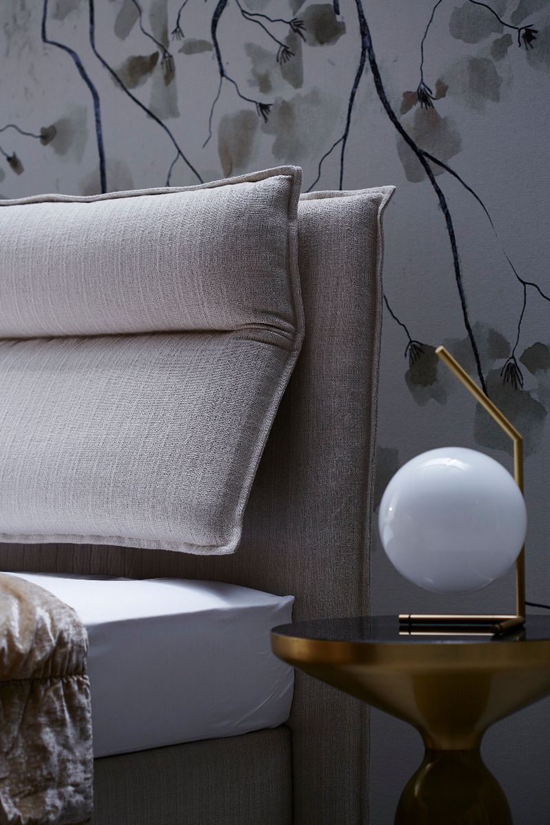 Caracteristici de design: Designul modern original al patului cu pernă creează confort în cameră și adaugă confort atunci când utilizați patul. Două perne scurte voluminoase cu cusături în jurul perimetrului conferă patului linii moi și contururi clare.