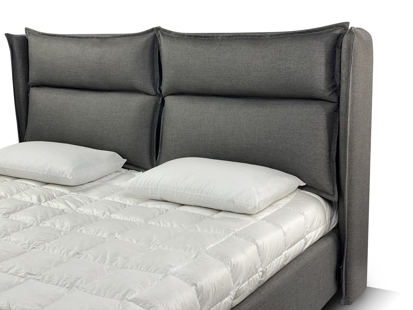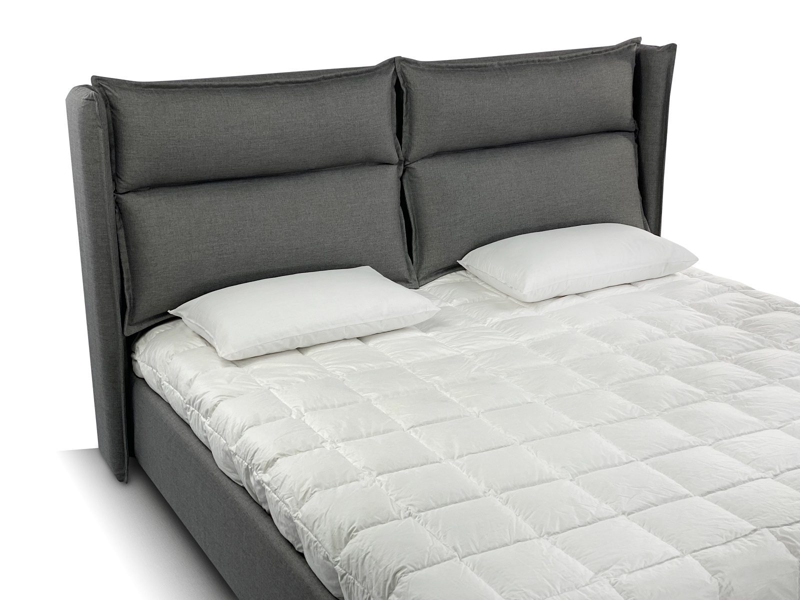 Caracteristici de design: Designul modern original al patului cu pernă creează confort în cameră și adaugă confort atunci când utilizați patul. Două perne scurte voluminoase cu cusături în jurul perimetrului conferă patului linii moi și contururi clare.