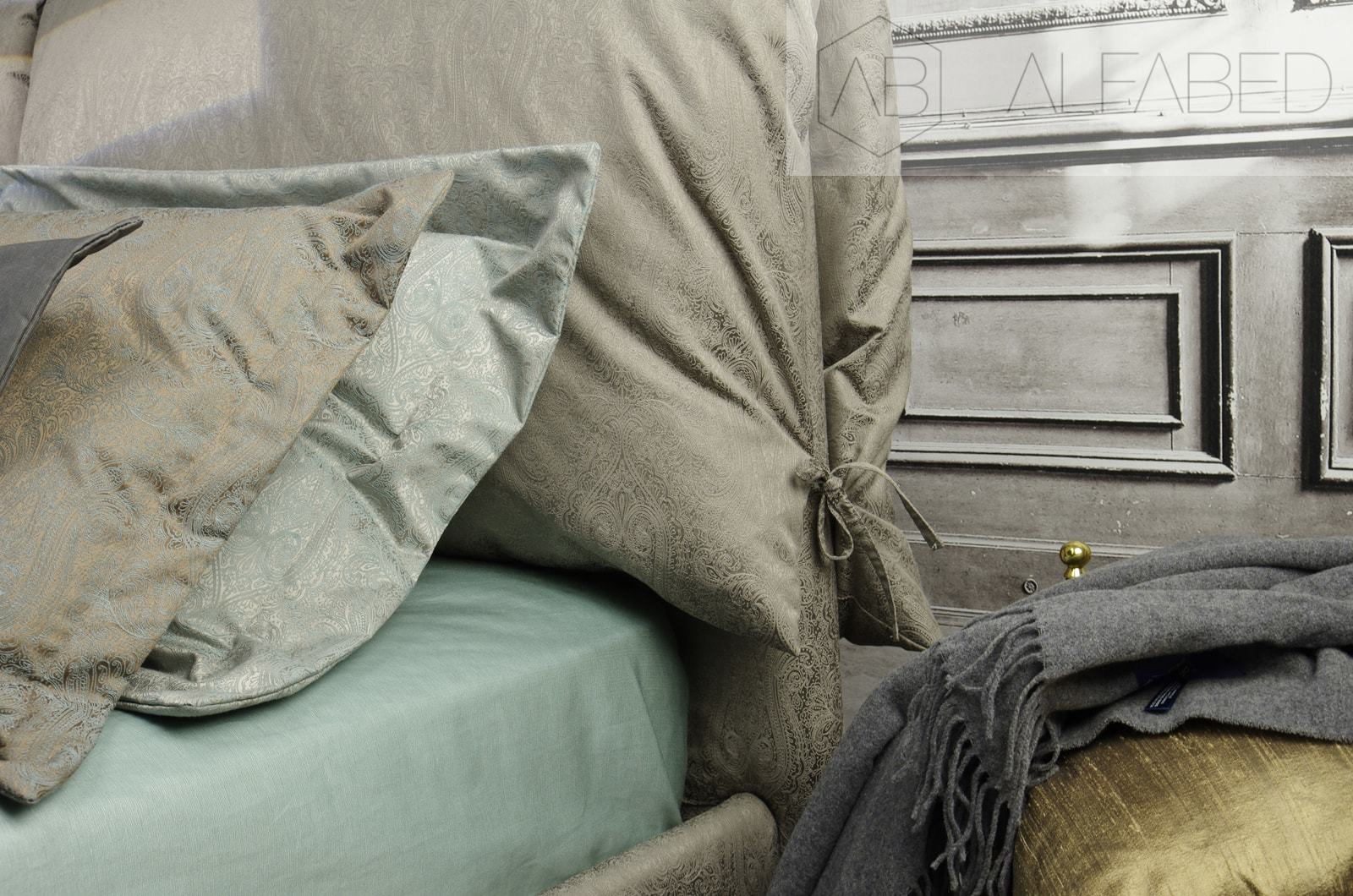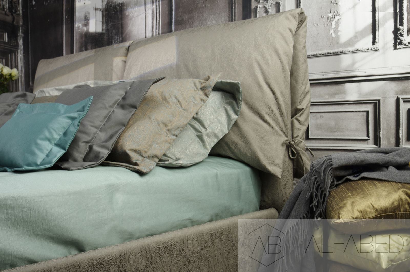 Особенности дизайна: объемные двусторонние навесные подушки на завязках (можно снимать), 1 шт. на односпальной кровати и 2 шт. на двуспальной.