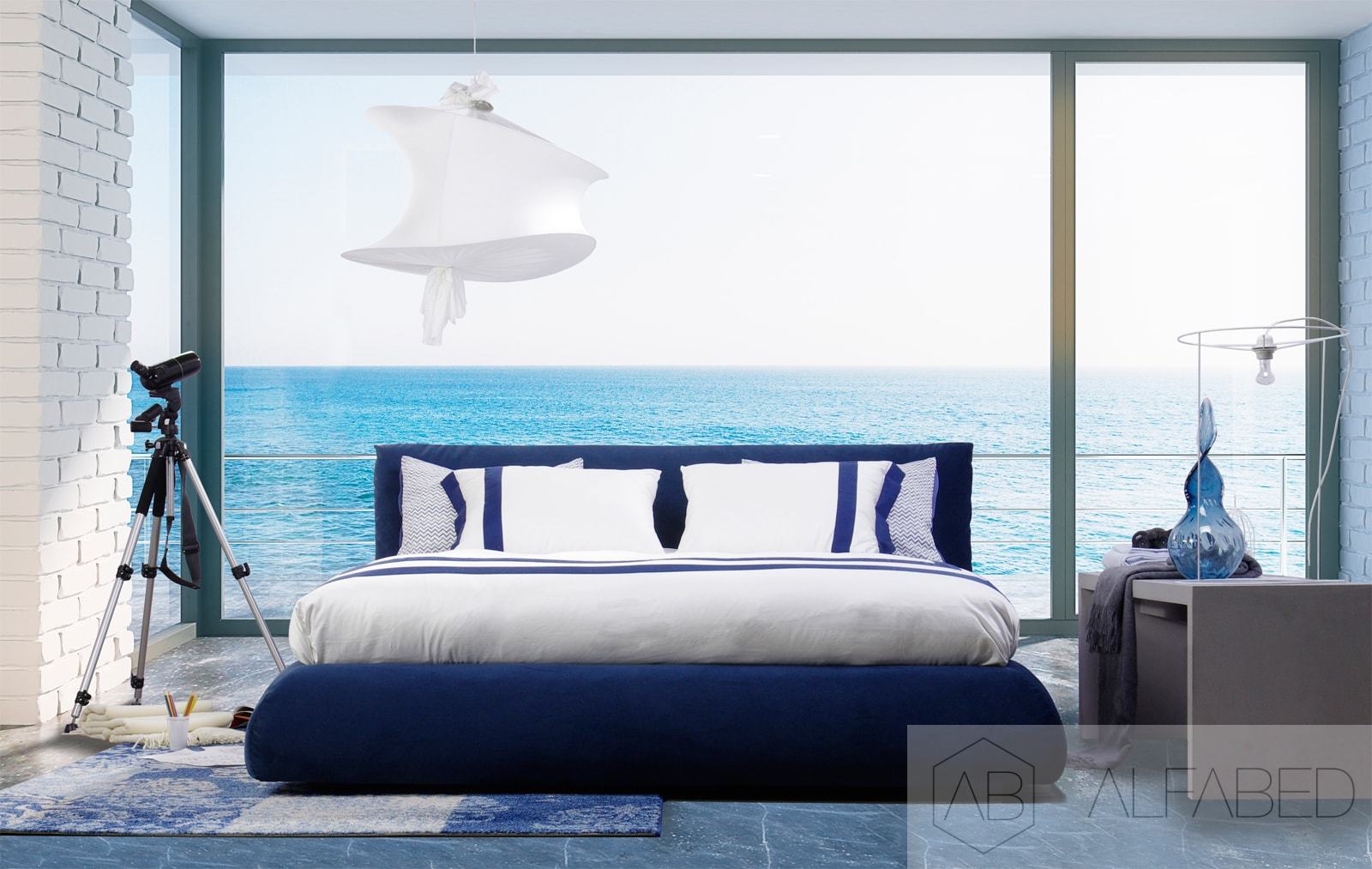 Особенности дизайна: уютная объемная кровать с цельной интегрированной подушкой в качестве изголовья.