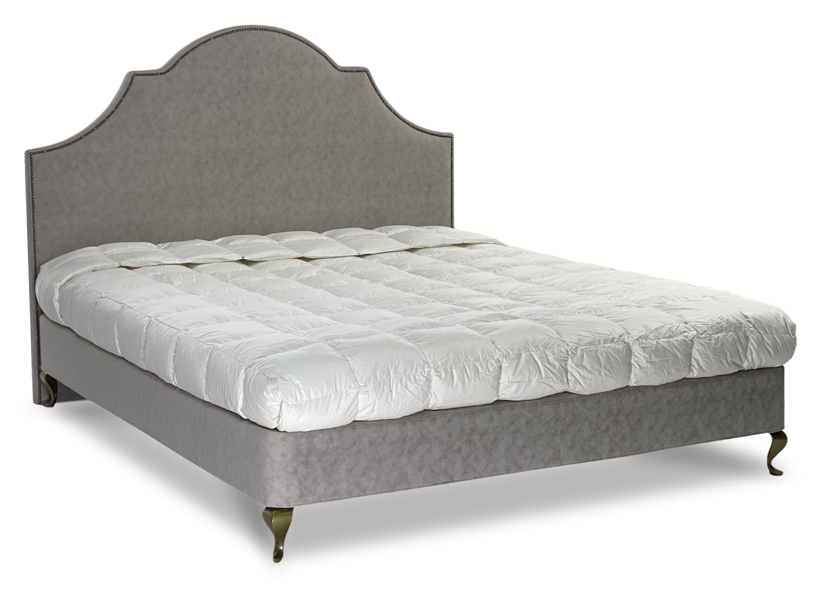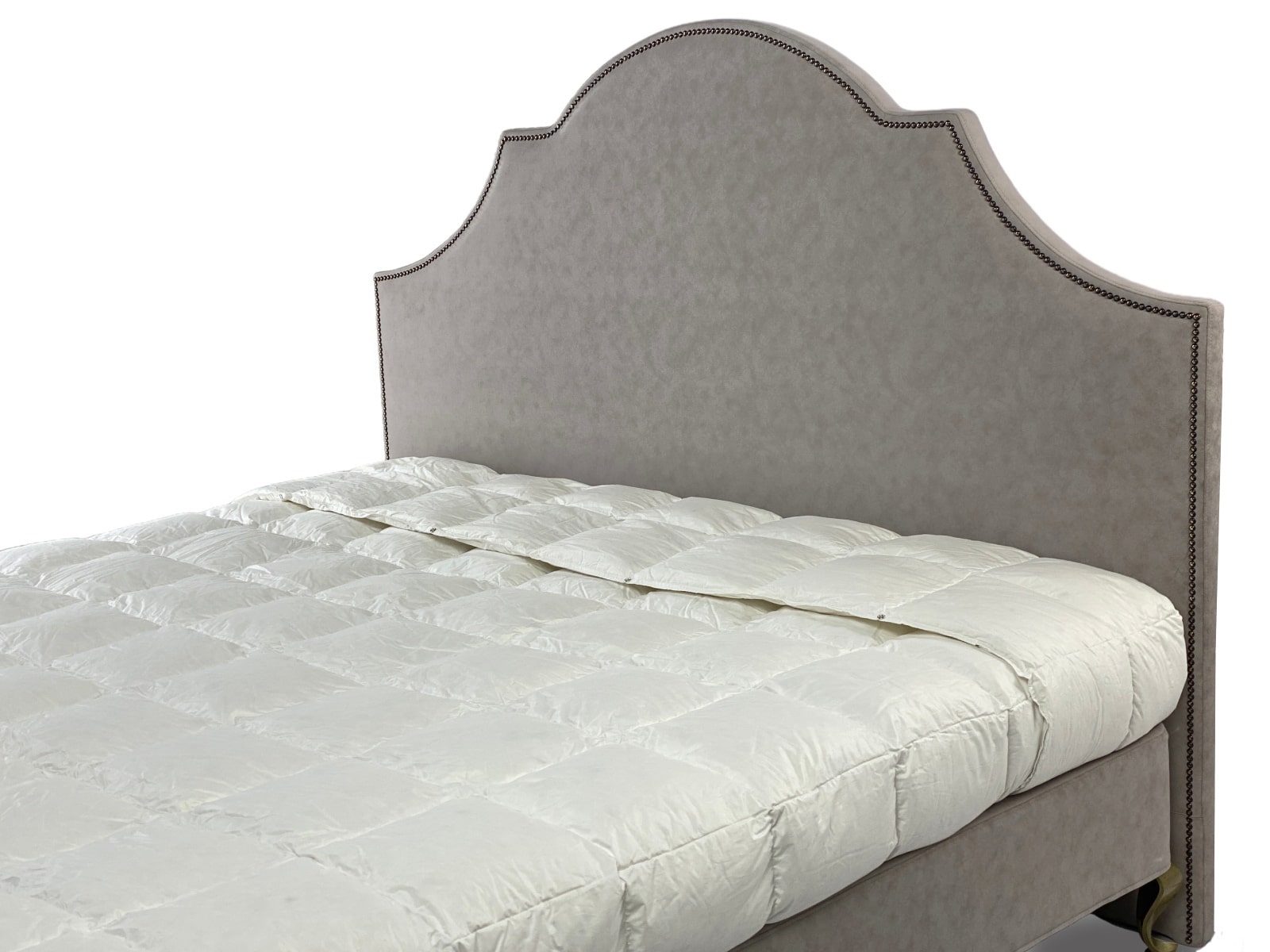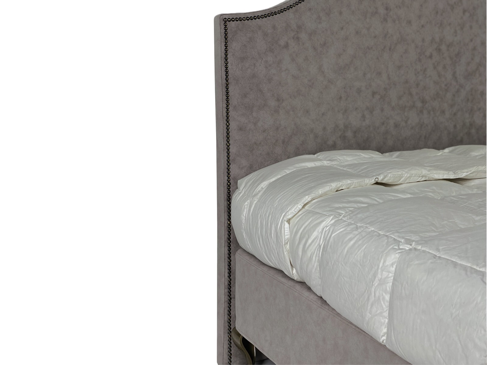 Дополнительная опция: отделка декоративными мебельными гвоздями — очень кропотливый и долгий труд.   Изголовье может быть без отделки мебельными гвоздиками.