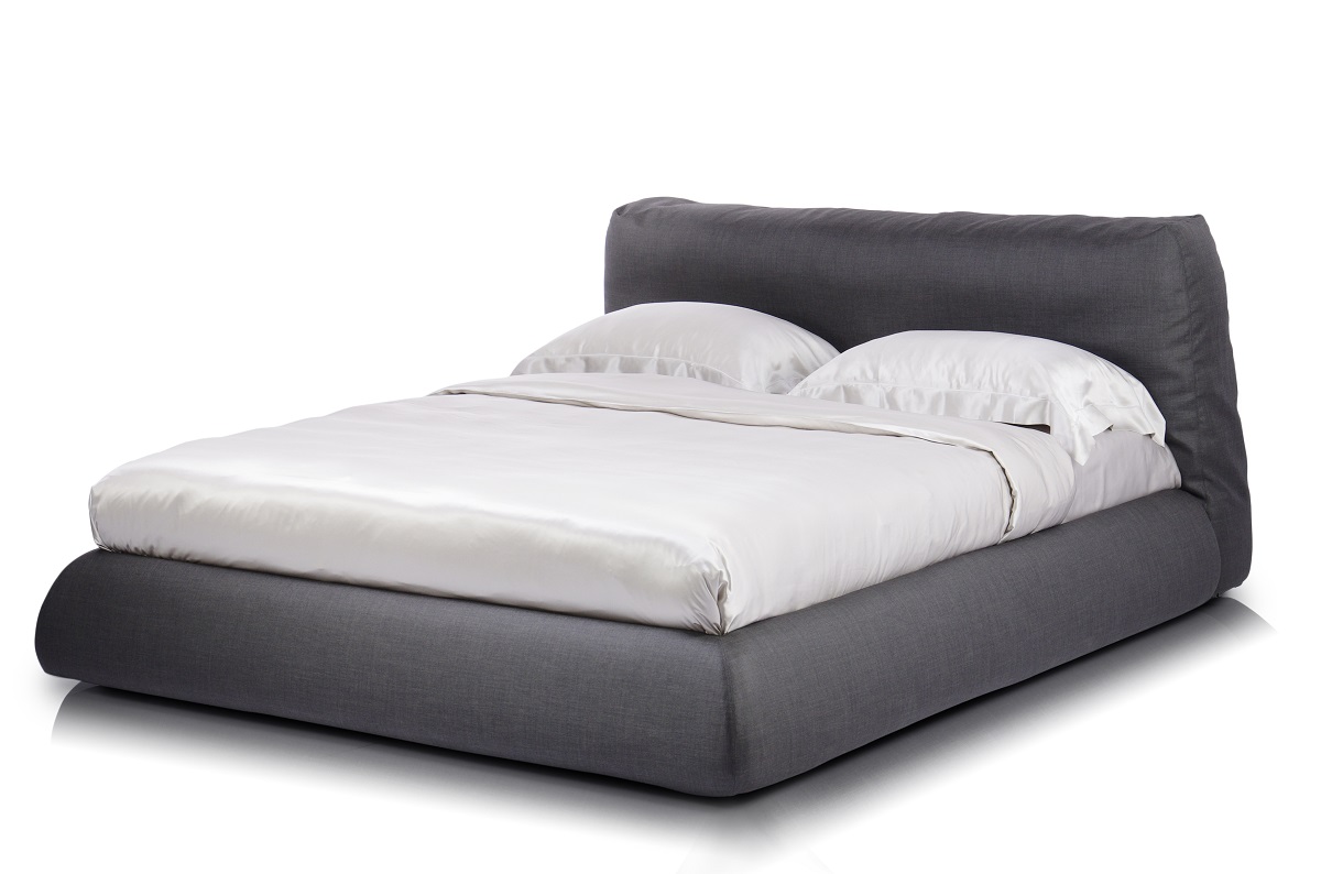 "Особенности дизайна: уютная объемная кровать с большой интегрированной подушкой в качестве изголовья.