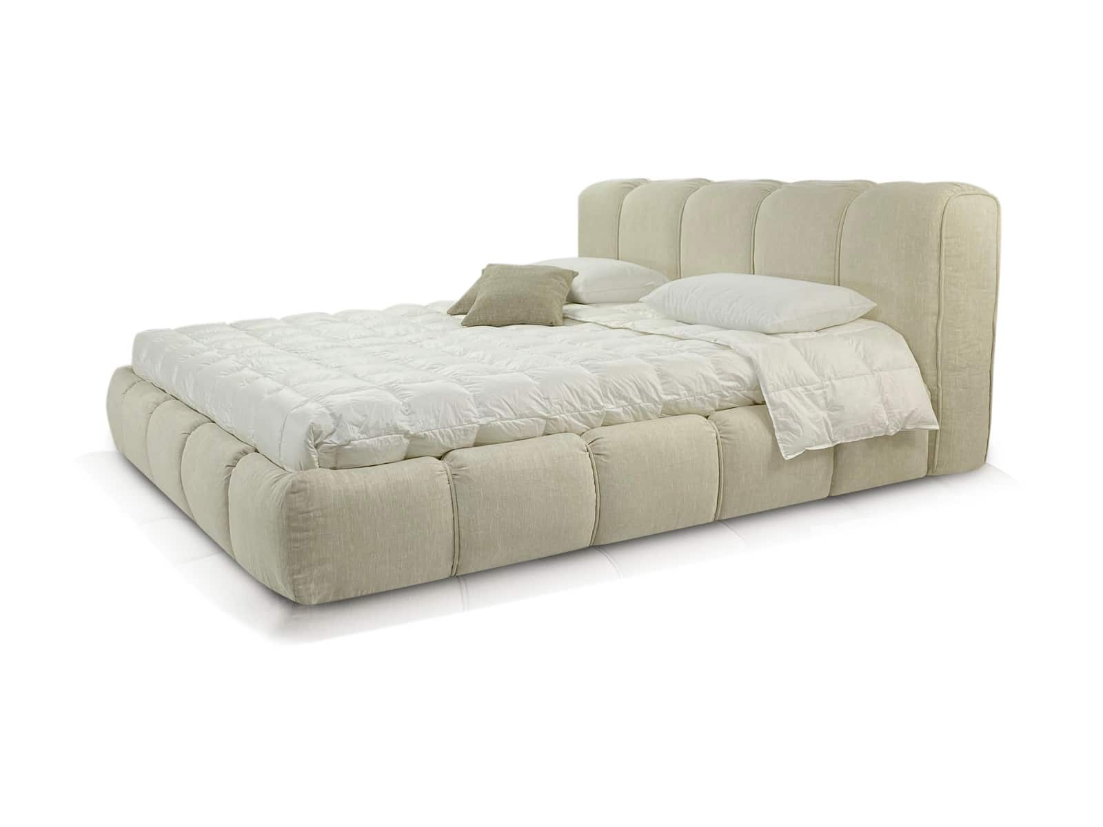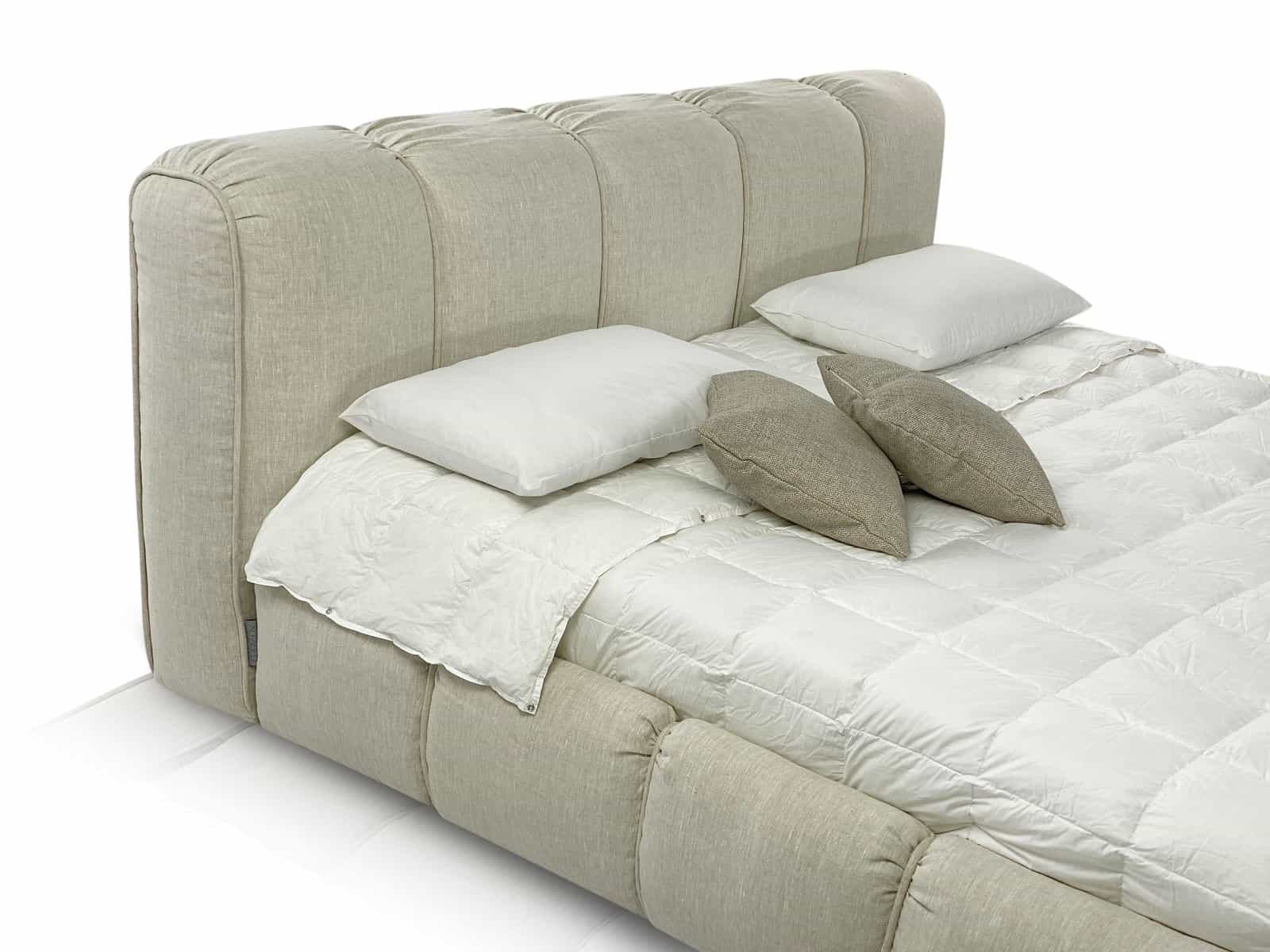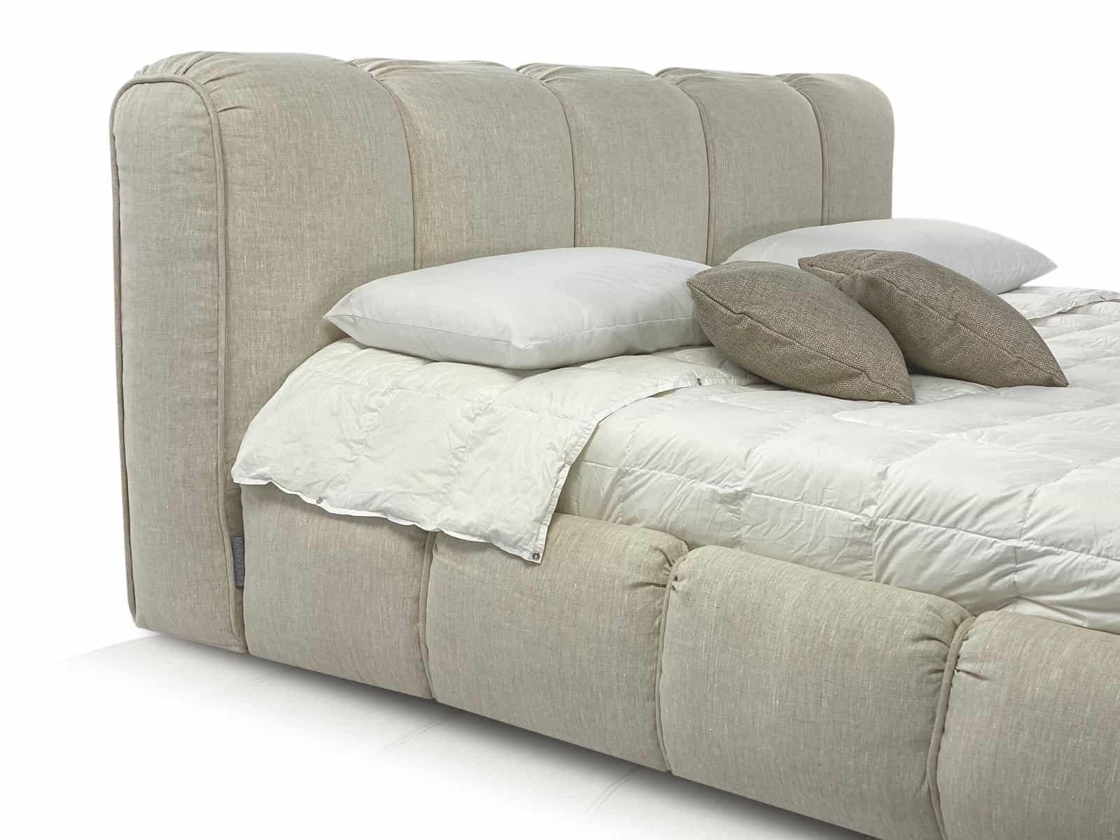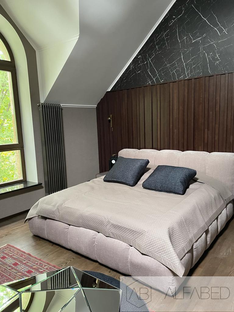 Nido , в переводе с итальянского «гнездо» это название полностью описывает модель - перед Вами настоящее уютное гнездышко! Уютная объемная мягкая кровать с пухлыми боковинами и большой интегрированной подушкой в качестве изголовья. Толщина изголовья 32 см., что делает спинку очень удобной и многофункцилнальной. В Вашем изголовье - практически мягкая банкетка! Используйте как Вашей душе угодно. Каждая полоса объемная и мягкая за счет уникального наполнителя Softform, который прекрасно держит объем и форму. За счет того, что боковины кровати также выполнены по технологии объемной стежки - все углы кровати очень мягкие. Представьте, как уютно будет прислониться к спинке изголовья, читая книгу перед сном, вы ощутите приятное погружение и вместе с тем расслабление. Кровать укомплектована механизмом подъема основания и удобным ящиком для хранения белья. Если Вы воспринимаете мир и вещи через прикосновения перед Вами Ваша идеальная кровать. Большой выбор тканей и цветов отделки. За счет дизайна можно комбинировать цвета полос. Все чехлы съемные на липучках (можно чистить).
