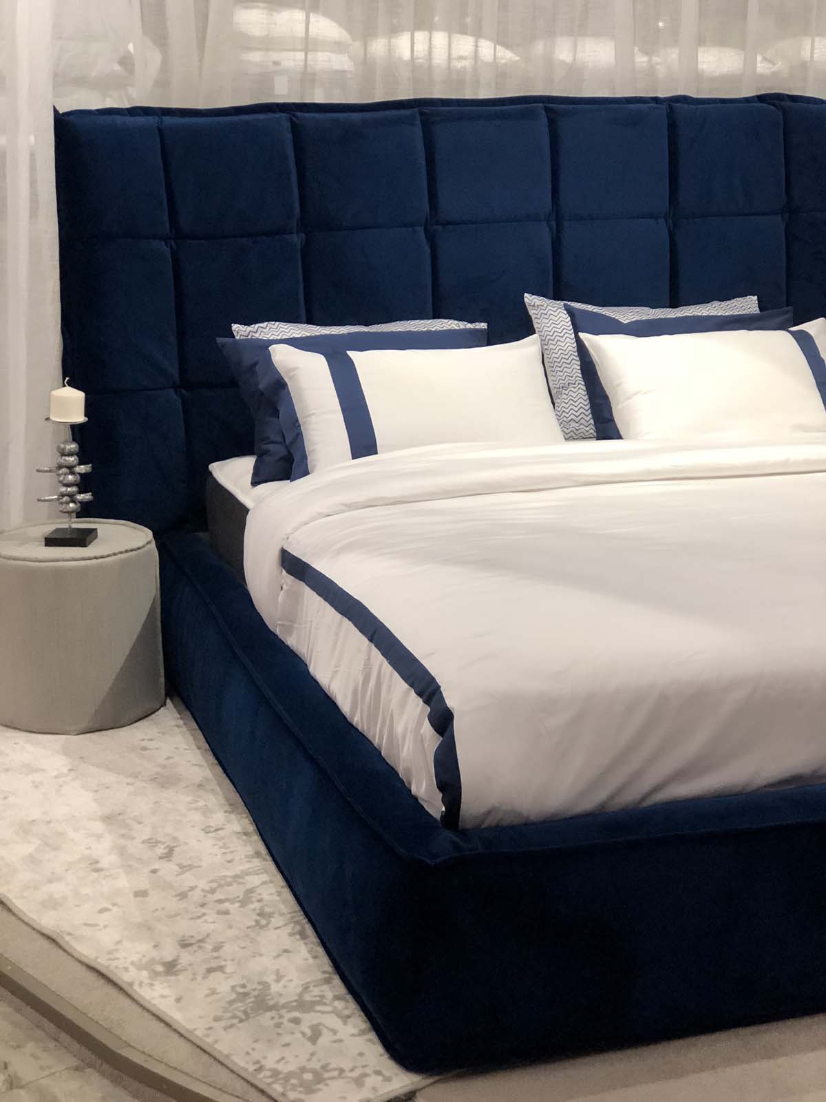 Кровать с высоким наклонным геометричным изголовьем с квадратами и распахнутыми «крыльями». Если Вы ищите оригинальную, удобную, модную и функциональную кровать с высоким изголовьем – она перед Вами! Каждый квадратик объемный и мягкий за счет уникального наполнителя Memoryform, который прекрасно держит объем и форму. За счет того, что боковины кровати также выполнены по технологии объемной стежки на материале с памятью формы Memoryform - все углы кровати очень мягкие. Представьте, как уютно будет прислониться к спинке изголовья, читая книгу перед сном, вы ощутите приятное погружение и вместе с тем расслабление. Если Вы воспринимаете мир и вещи через прикосновения перед Вами Ваша идеальная кровать. Кровать укомплектована механизмом подъема основания и удобным ящиком для хранения белья. Большой выбор тканей и цветов отделки. За счет дизайна можно комбинировать цвета квадратов. Все чехлы съемные на липучках (можно чистить).