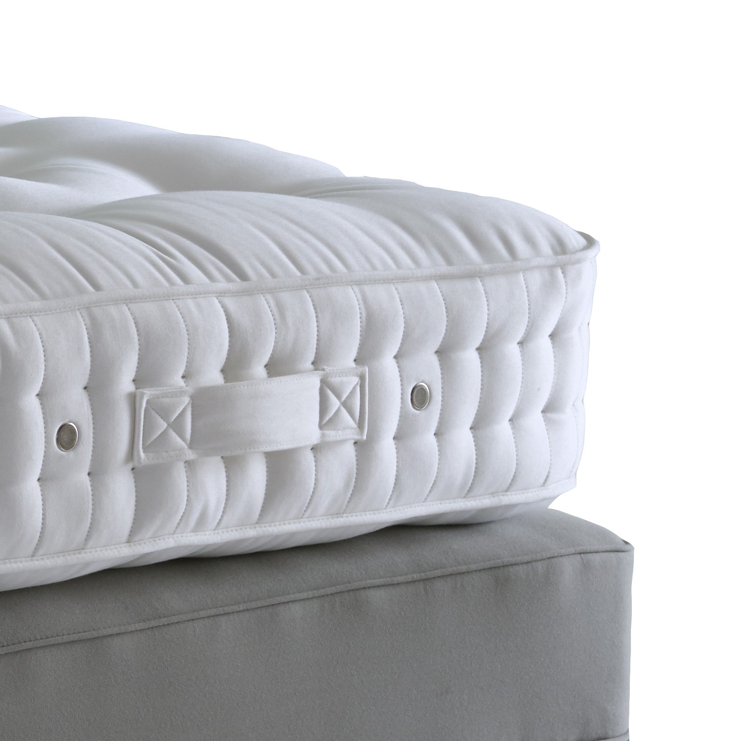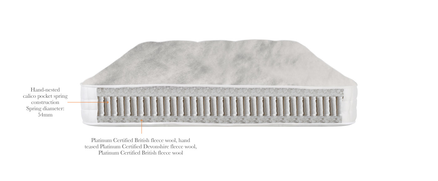 В основе матраса Devonshire одинарный слой чрезвычайно надежных и отзывчивых независимых пружин британский флис и овечья шерсть местного производства.