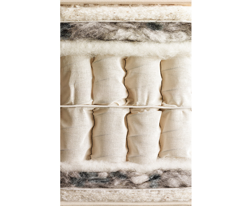 Нижний слой – это смесь мягкой шерсти, белого хлопка и натурального конского волоса, прошитых вручную через прочный лен.