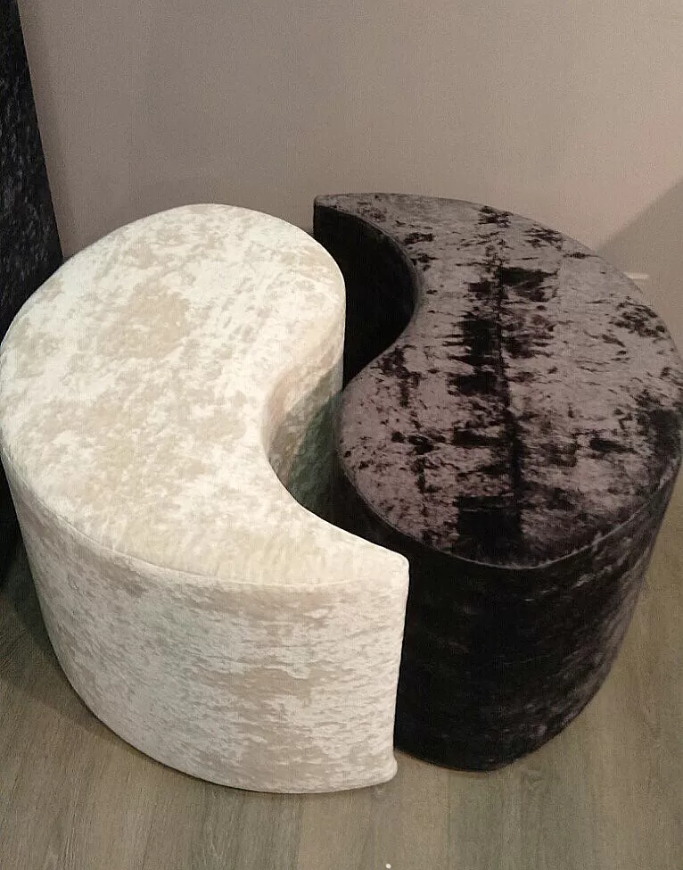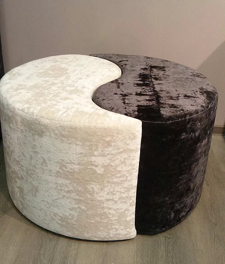 Пуф Garmonia состоит из двух элементов. Обивка пуфа может быть выполнена в мебельной ткани или экокоже. Компактный пуф станет неотъемлемым  атрибутом вашей комнаты. Оригинальный пуф, изготовлен по дизайну амулета  инь-янь. Символ Инь-Ян (кит. "Тайцзи") - символ гармонии и единства мужского и женского начал. Символ жизни, придающий энергетическое равновесие, Это один из древнейших философских символов. Непрерывное существование и гармония со всей вселенной, магический оберег от злых духов. Пуф для прихожей, спальни, гостиной!