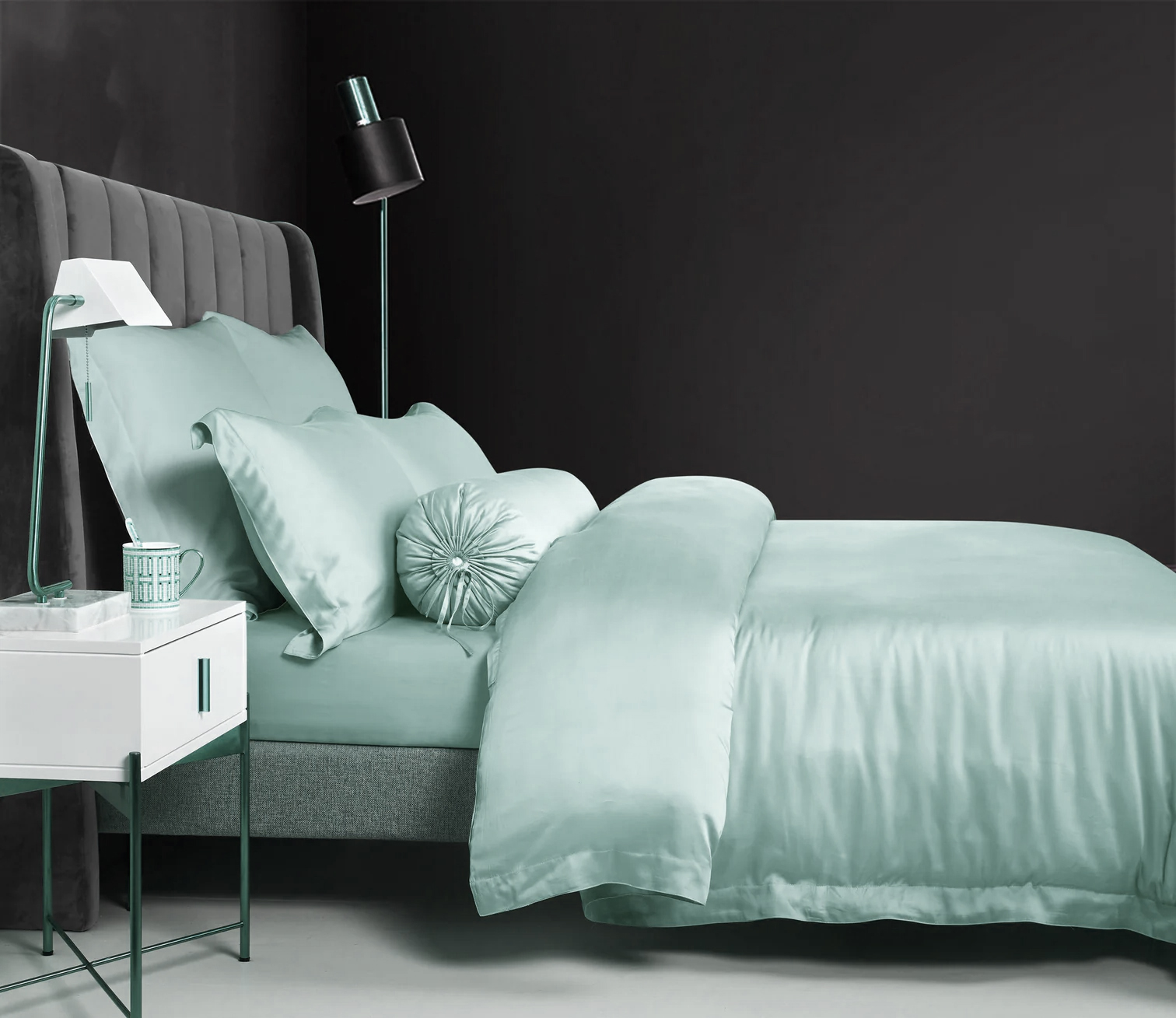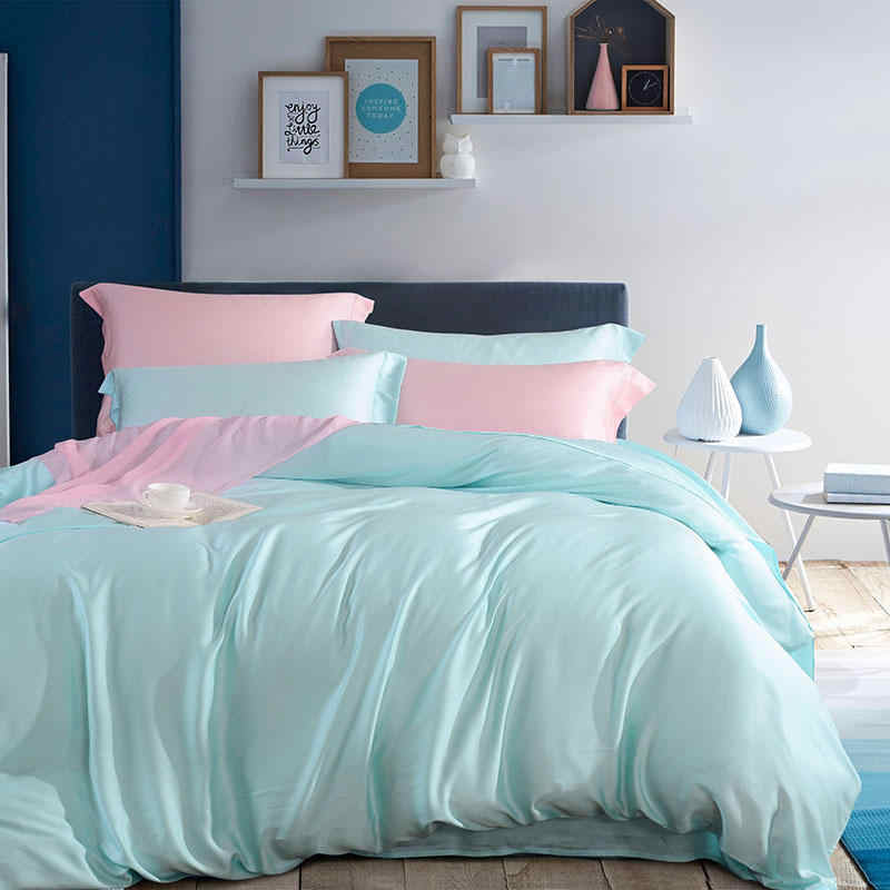 Цвет морской волны - по разному играет на свету.  В зависимости от освещения за счет бликов гладкой поверхности Тенселя, становится то нежнее, то насыщеннее.  Настоящие морские волны в Вашей постели!