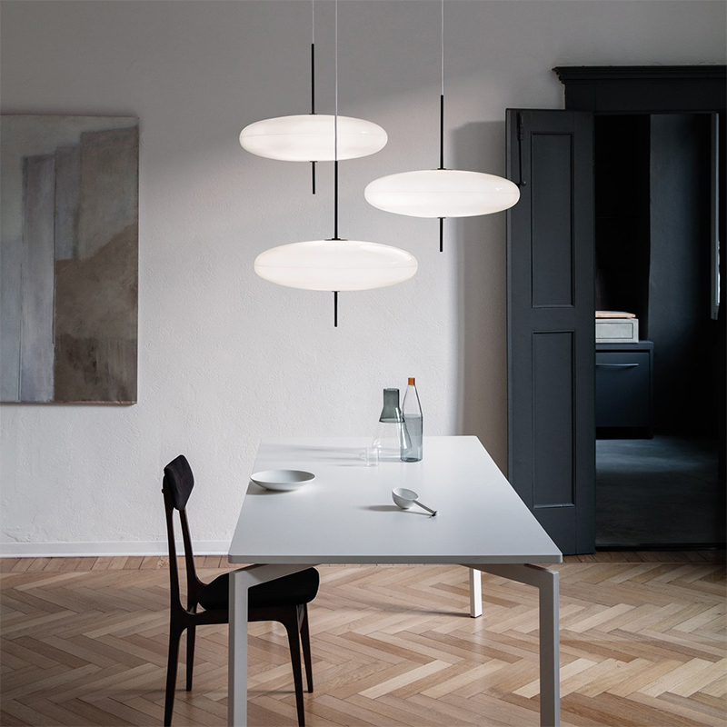 Подвесной потолочный светильник простой лаконичной формы и дизайна. Плафон будто бусина нанизан на металлический держатель. Легкий и нежный. Минималистичный дизайн вне времени.