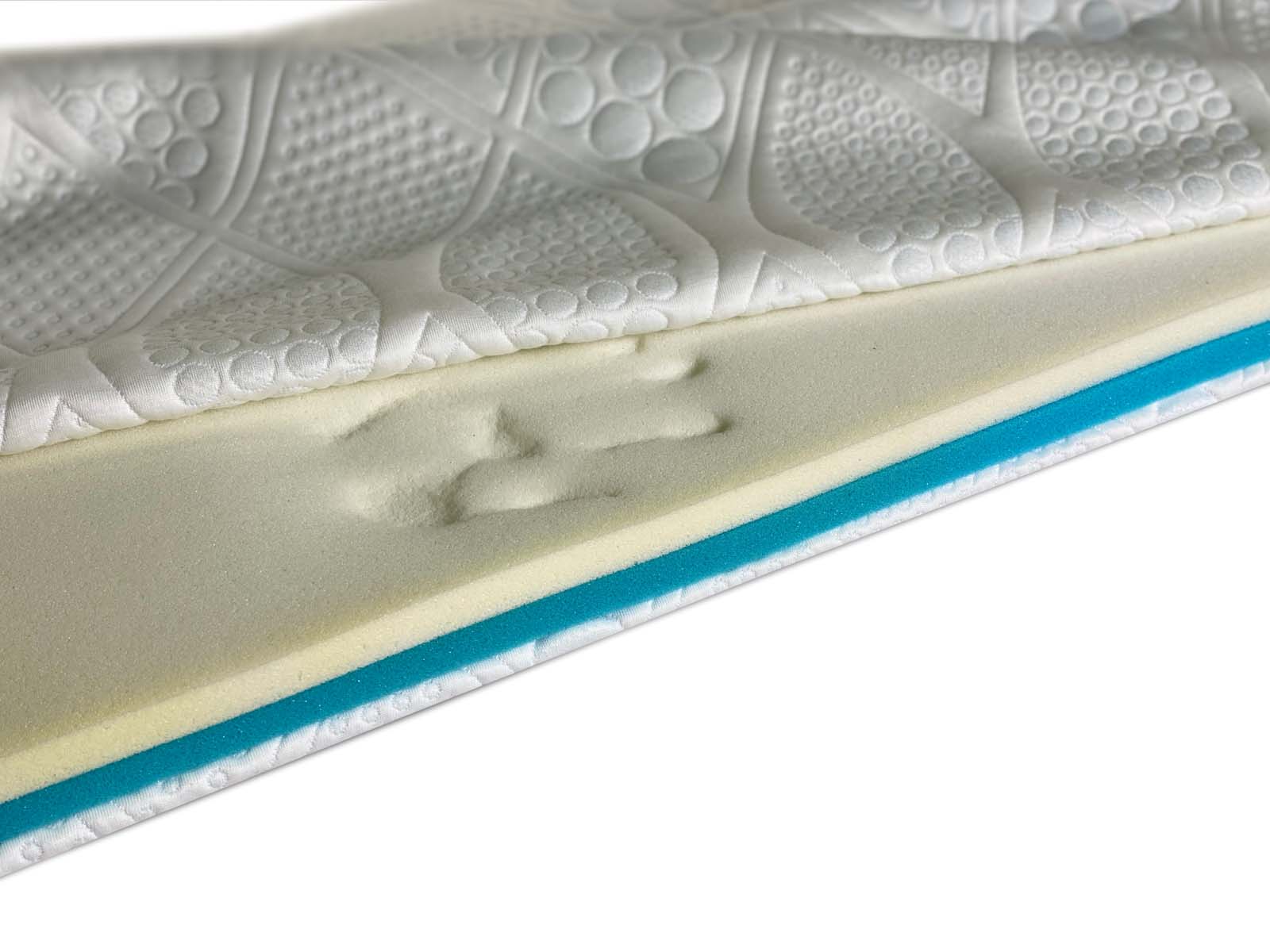 Топпер (наматрасник/тонкий матрас) Alfabed Universe – выполнен из двух вязкоэластичных слоев, которые отличаются по плотности и эффектам эластичности: